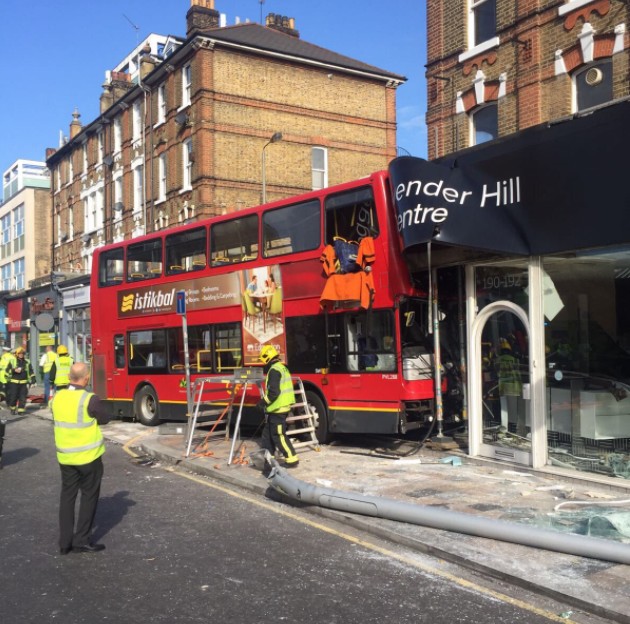 Un autobús de dos plantas se empotró este jueves contra un comercio de un barrio del suroeste de Londres, accidente que causó varios heridos y en el que se vieron atrapadas dos pasajeras de la segunda planta, informó Scotland Yard, que no ofreció más detalles.