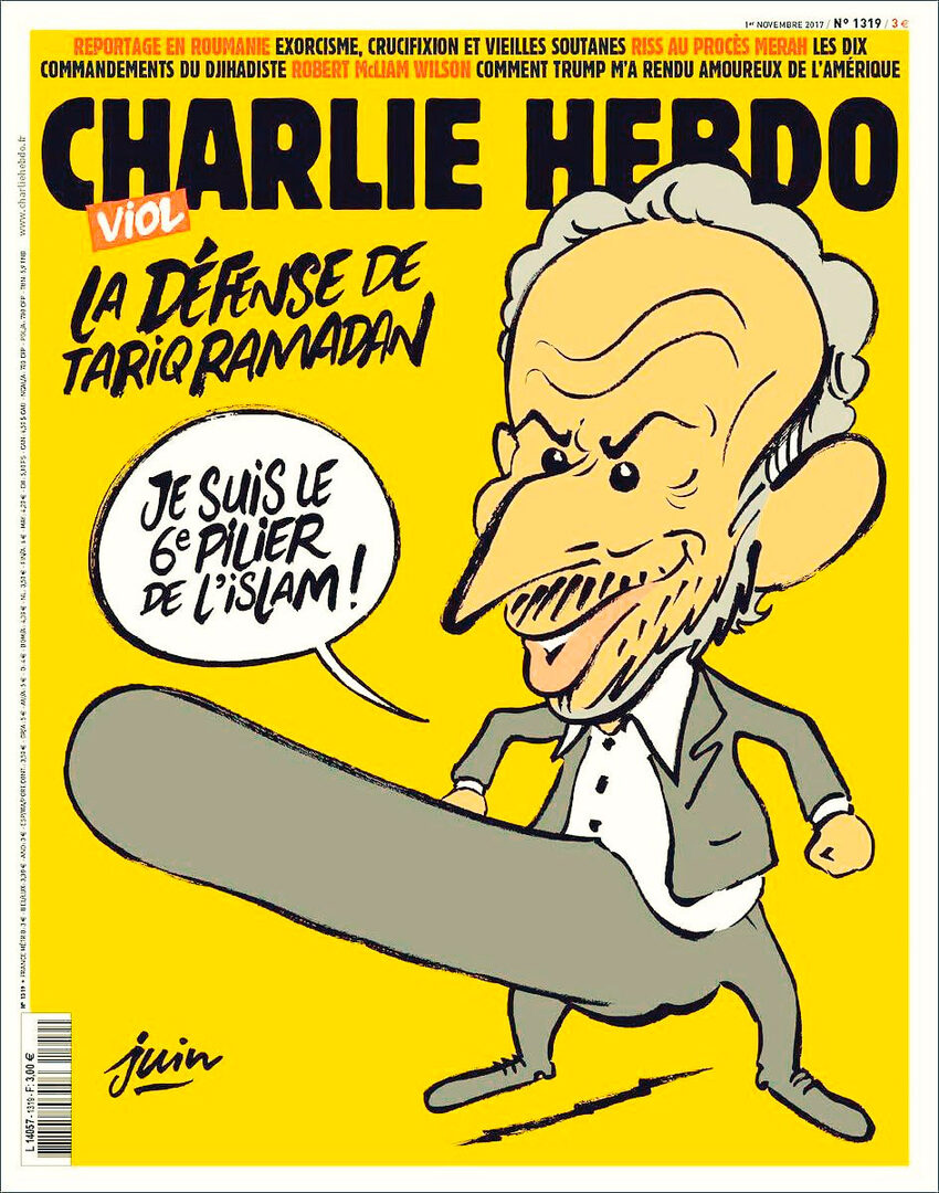En la portada de su edición del pasado día 1, Ramadan aparece caricaturizado con un pene en erección y afirma "soy el sexto pilar del islam", una alusión a los que se consideran los cinco "pilares" u obligaciones de todo musulmán.