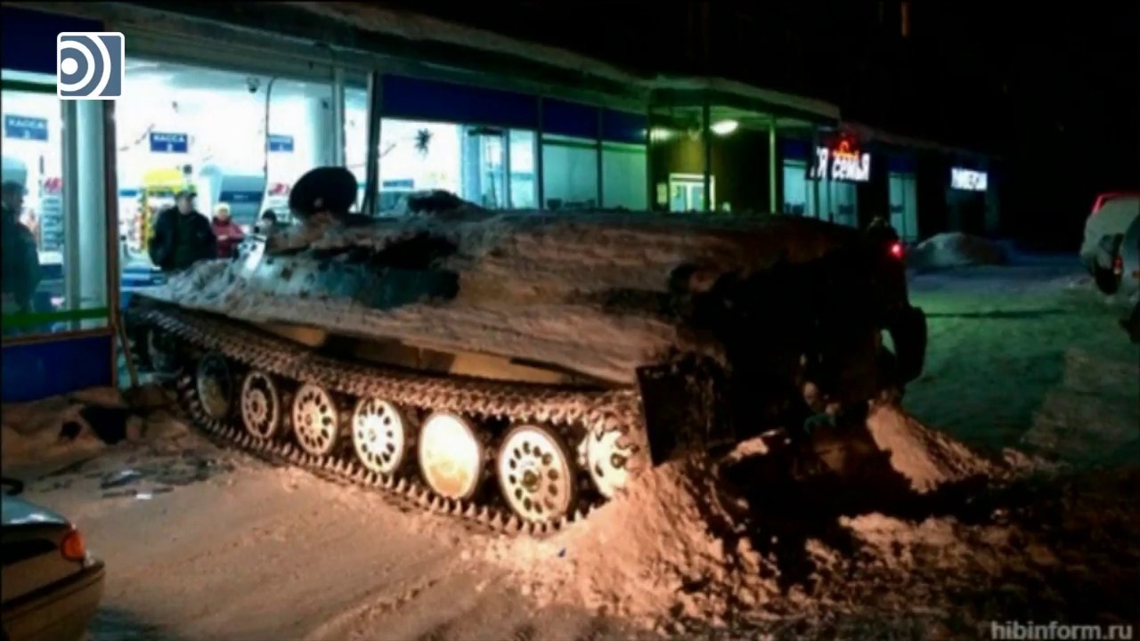 Las imágenes de un peculiar robo en Rusia están dando la vuelta al mundo. En un pequeño pueblo del círculo polar ártico, un ciudadano ruso, de unos 30 años, utilizó un vehículo blindado para realizar un alunizaje contra el escaparate de un supermercado, para posteriormente trepar entre los escombros para robar una botella de vino.