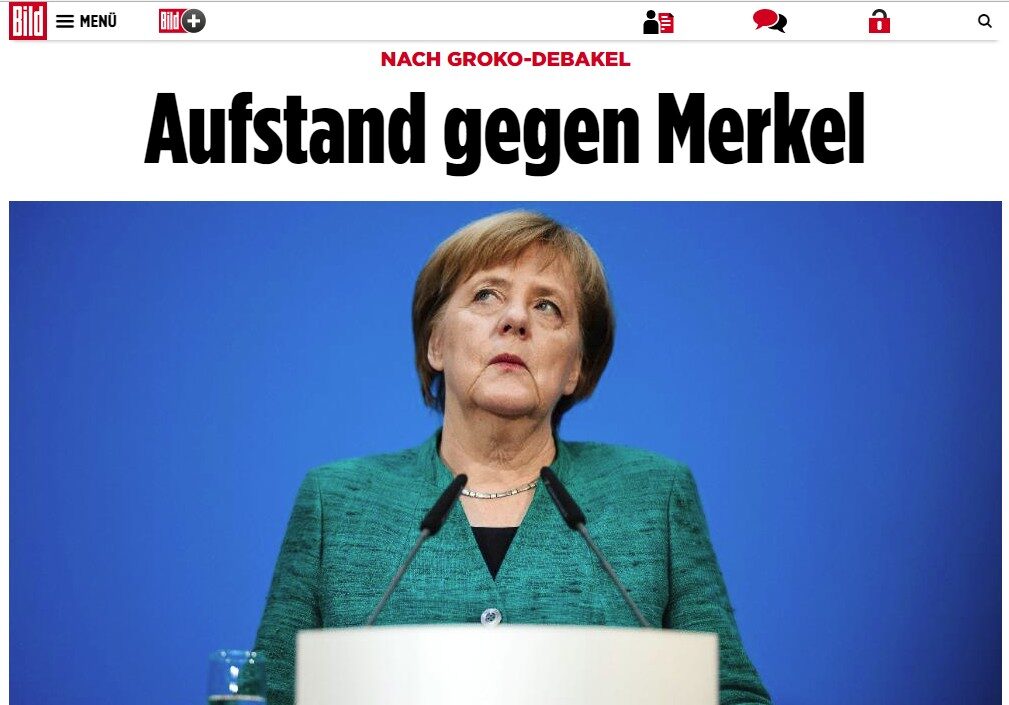 "Rebelión contra Merkel", titula en la portada de su edición digital el diario Bild, que recoge además una serie de declaraciones que muestran el descontento que hay dentro del partido que lidera Merkel desde hace 18 años.