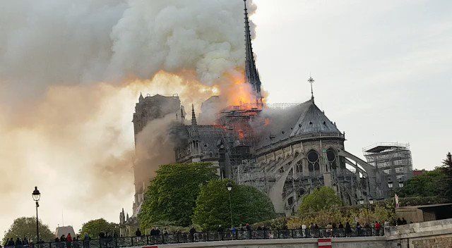 El fuego de Notre Dame parece de importantes proporciones y está concentrado en la parte de la cabecera del templo. El incendio ha generado una densa columna de humo.