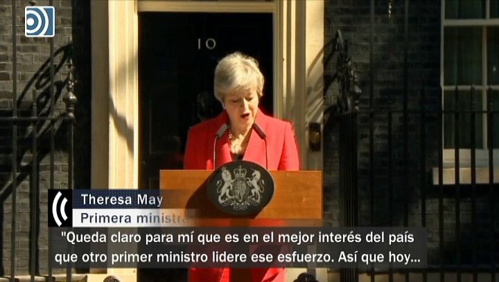 Theresa May, primera ministra del Reino Unido: "Queda claro para mí que es en el mejor interés del país que otro primer ministro lidere ese esfuerzo. Así que hoy anuncio mi renuncia como líder del partido conservador, de forma que un sucesor pueda ser elegido. He mantenido a su majestad la reina completamente informada de mis intenciones y continuaré sirviendo como primera ministra hasta que concluya el proceso. Ha sido y siempre será un asunto de profundo arrepentimiento no haber sido capaz de implementar el Brexit. Ocupar este puesto ha sido el mayor honor de mi vida. He sido la segunda mujer en ocupar el cargo, pero no seré la última. Me voy sin mala voluntad, sino con una enorme gratitud de haber tenido la oportunidad de servir al país que amo".