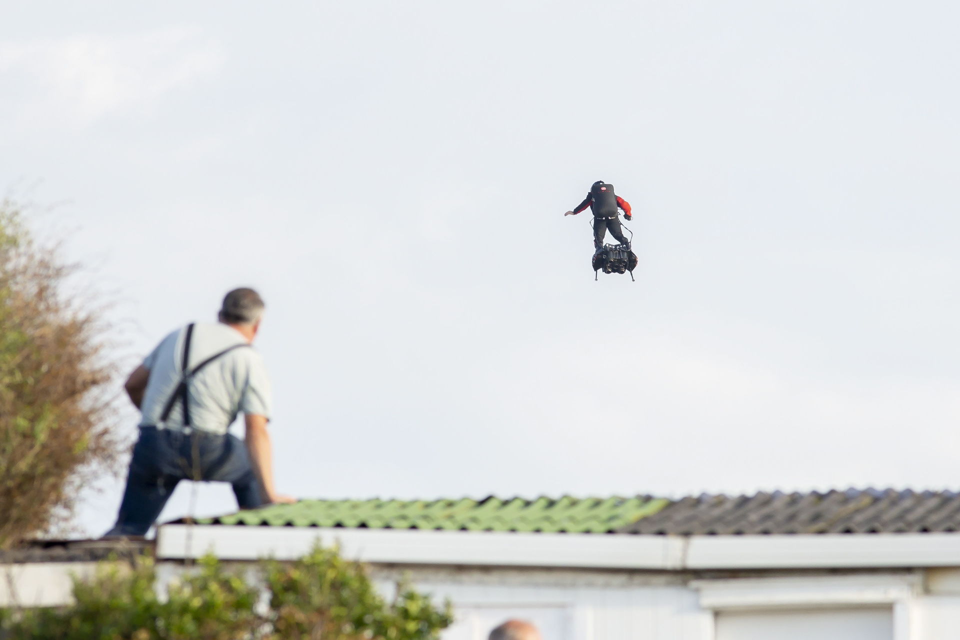 Zapata, que inventó el dispositivo hace cerca de tres años, sobrevoló el desfile militar del 14 de julio en París con motivo del Día Nacional de Francia.