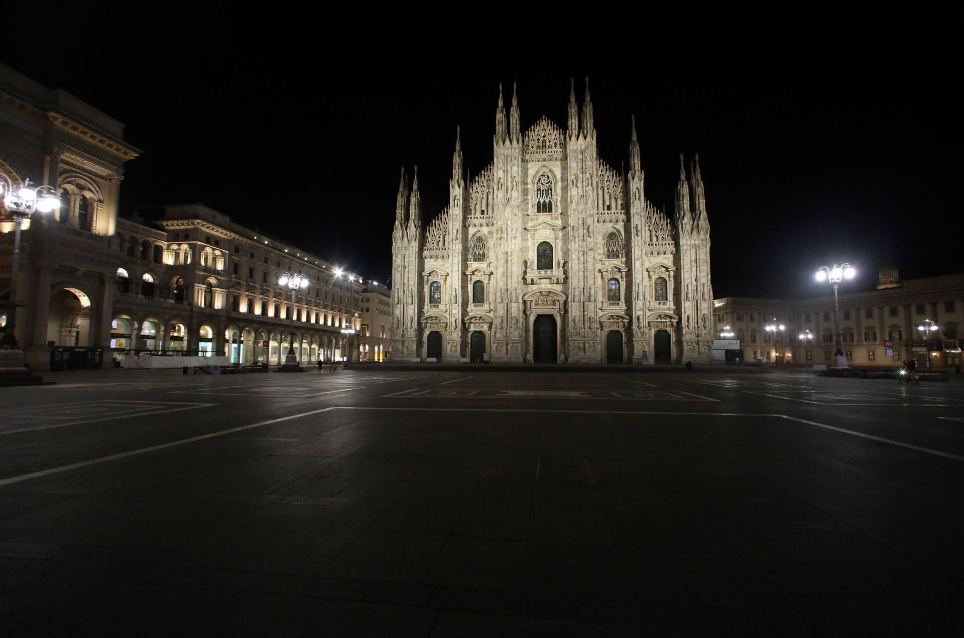 El aspecto de la Plaza del Duomo en Milán, después de confirmarse las medidas para la contención del coronavirus en Italia.
