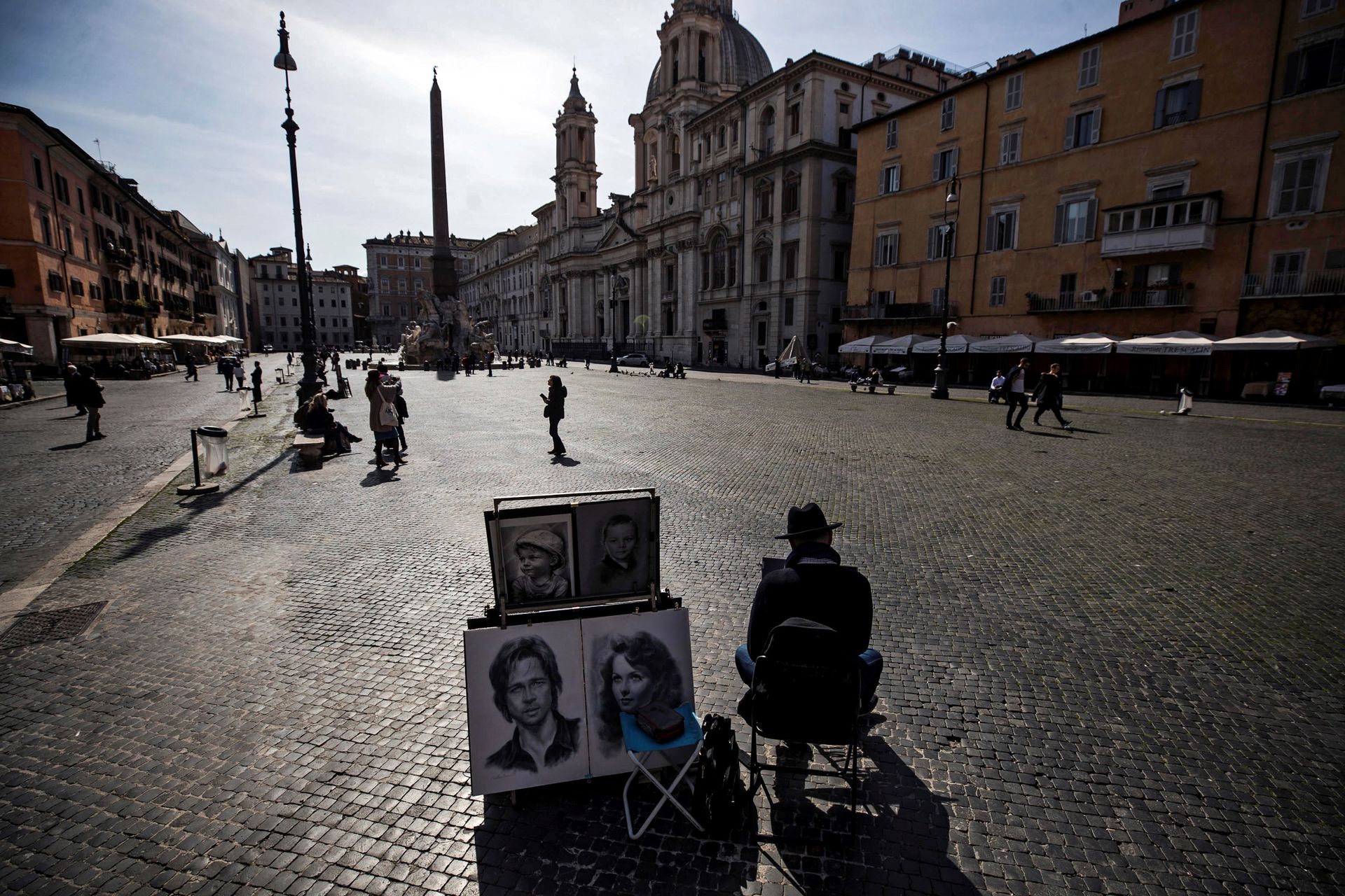Una vista de la Plaza Navona casi desierta en el centro de Roma, Italia, el 10 de marzo de 2020. En un intento por detener la propagación de la enfermedad COVID-19 causada por el coronavirus, el primer ministro italiano Giuseppe Conte anunció el 9 Marzo la extensión de las medidas de cuarentena de coronavirus a todo el país, comenzando el 10 de marzo hasta el 3 de abril.