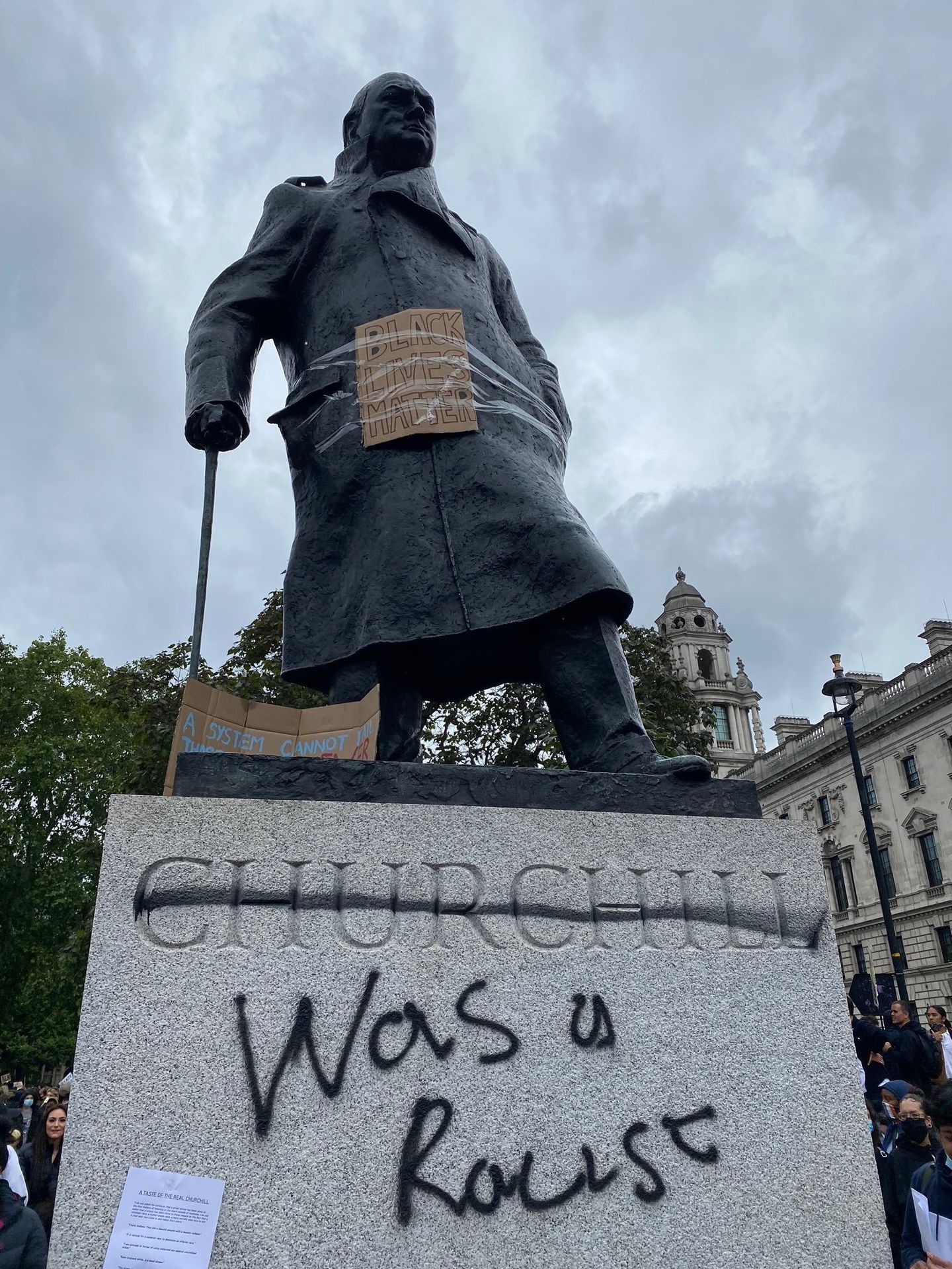 En Londres no se ha librado Winston Churchill. El que luchara contra el nazismo y fascismo en la Segunda Guerra Mundial ha sido también culpabilizado por los Black Lives Matter. Su escultura aparecía destrozada por las pintadas y llena de mensajes de los Antifa.