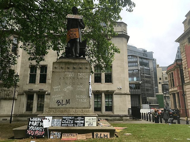 🇬🇧 | #RU: manifestantes de Antifa y Black Lives Matter en Londres vandalizaron las estatuas de Churchill, el principal líder en la 2da Guerra Mundial contra el fascismo, y de Abraham Lincoln, el presidente estadounidense que abolió la esclavitud. pic.twitter.com/j8ksVKsnio