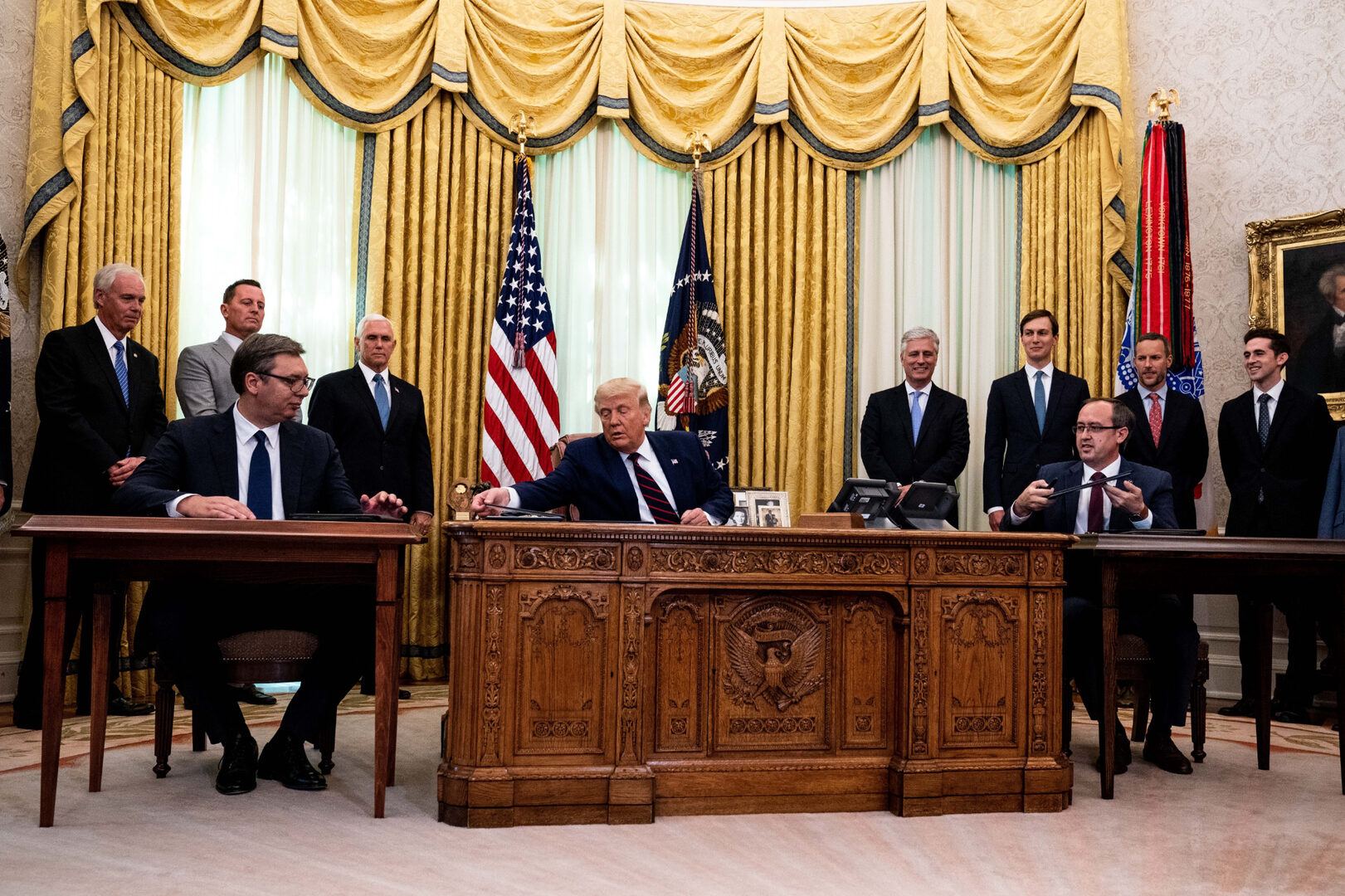 El presidente de Serbia, Aleksandar Vucic, y el primer ministro de Kosovo, Avdullah Hoti, han firmado este viernes en la Casa Blanca un acuerdo para avanzar hacia la normalización de relaciones económicas, en un hito que le sirve al presidente de Estados Unidos, Donald Trump, para reivindicar una nueva victoria diplomática a dos meses de las elecciones.