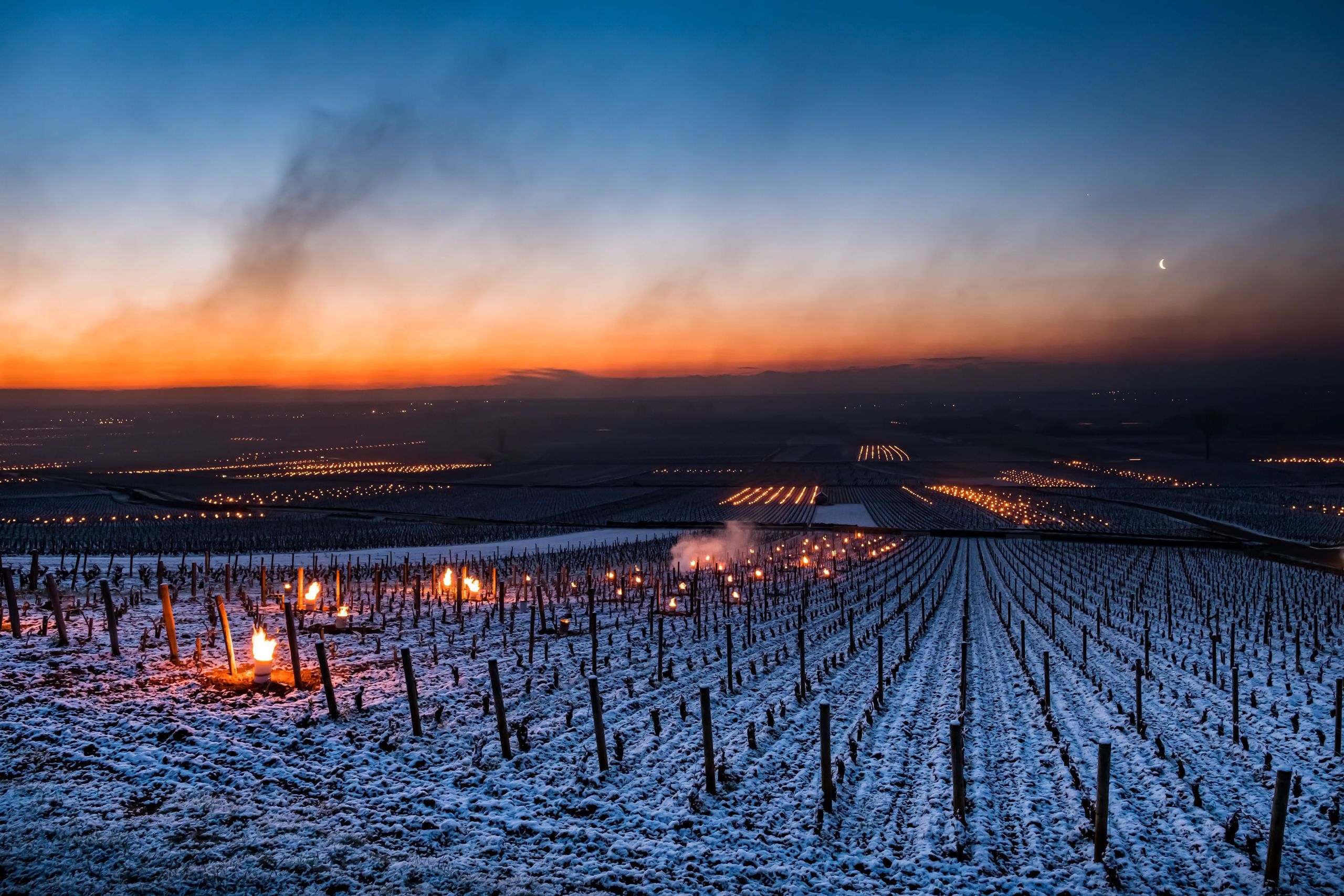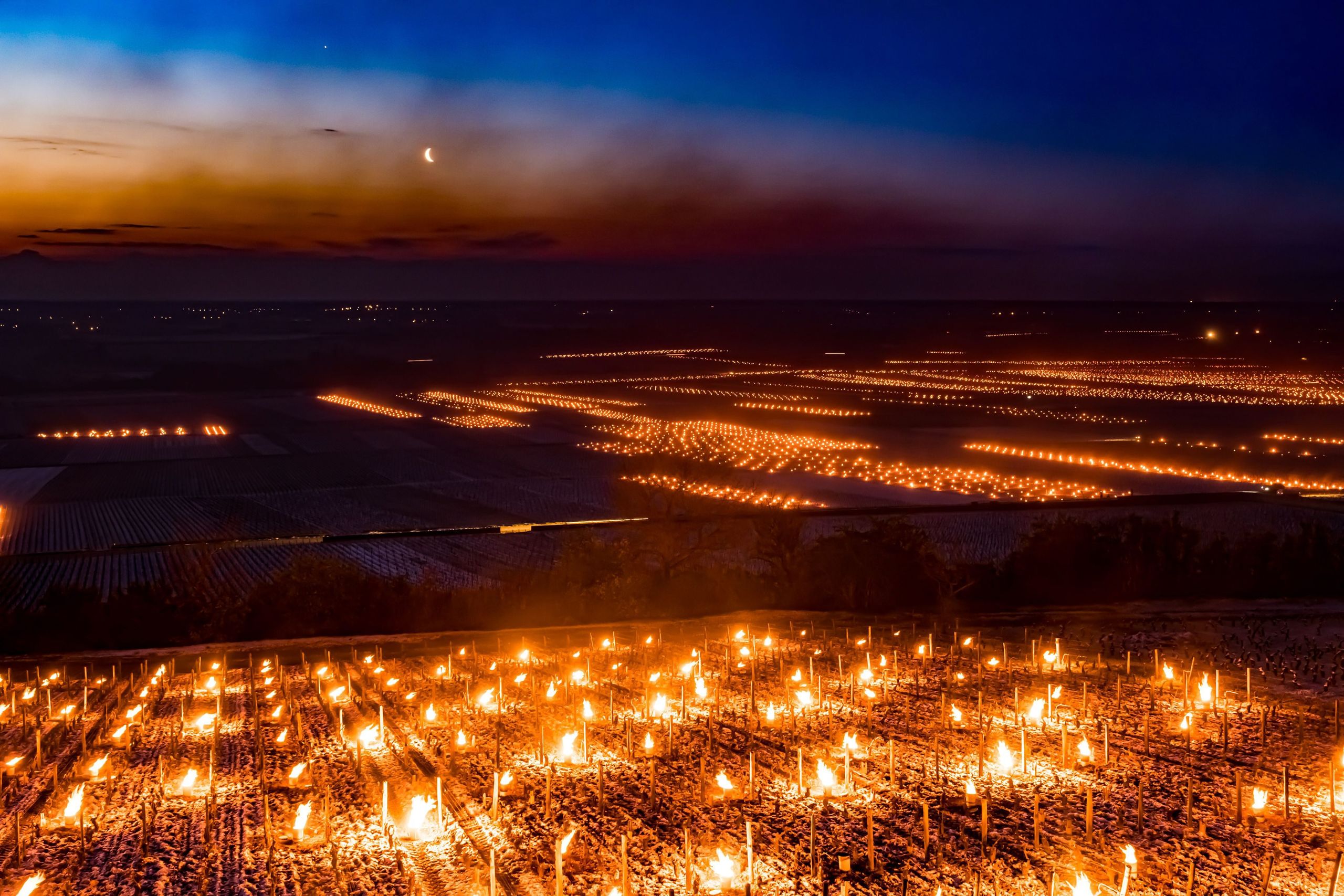 Más de 10.000 hogueras han encendido los viticultores para combatir las intensas heladas nocturnas de los últimos días para evitar perder sus cosechas en regiones tan vinícolas como Chablis, Borgoña o Burdeos.