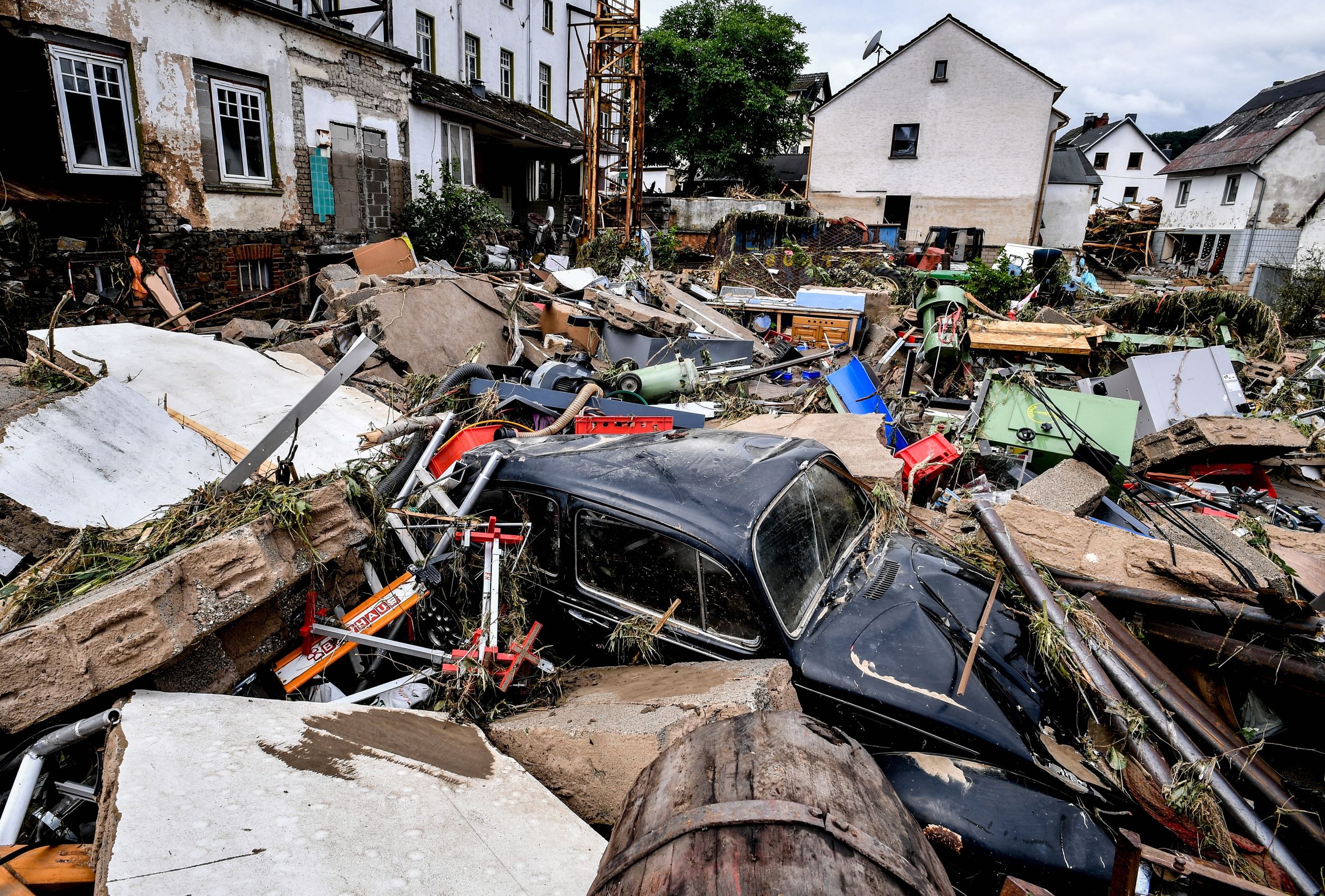 Escombros cubren las calles de la localidad de Schuld, en el distrito de Ahrweiler tras la fuerte crecida del río Ahr.