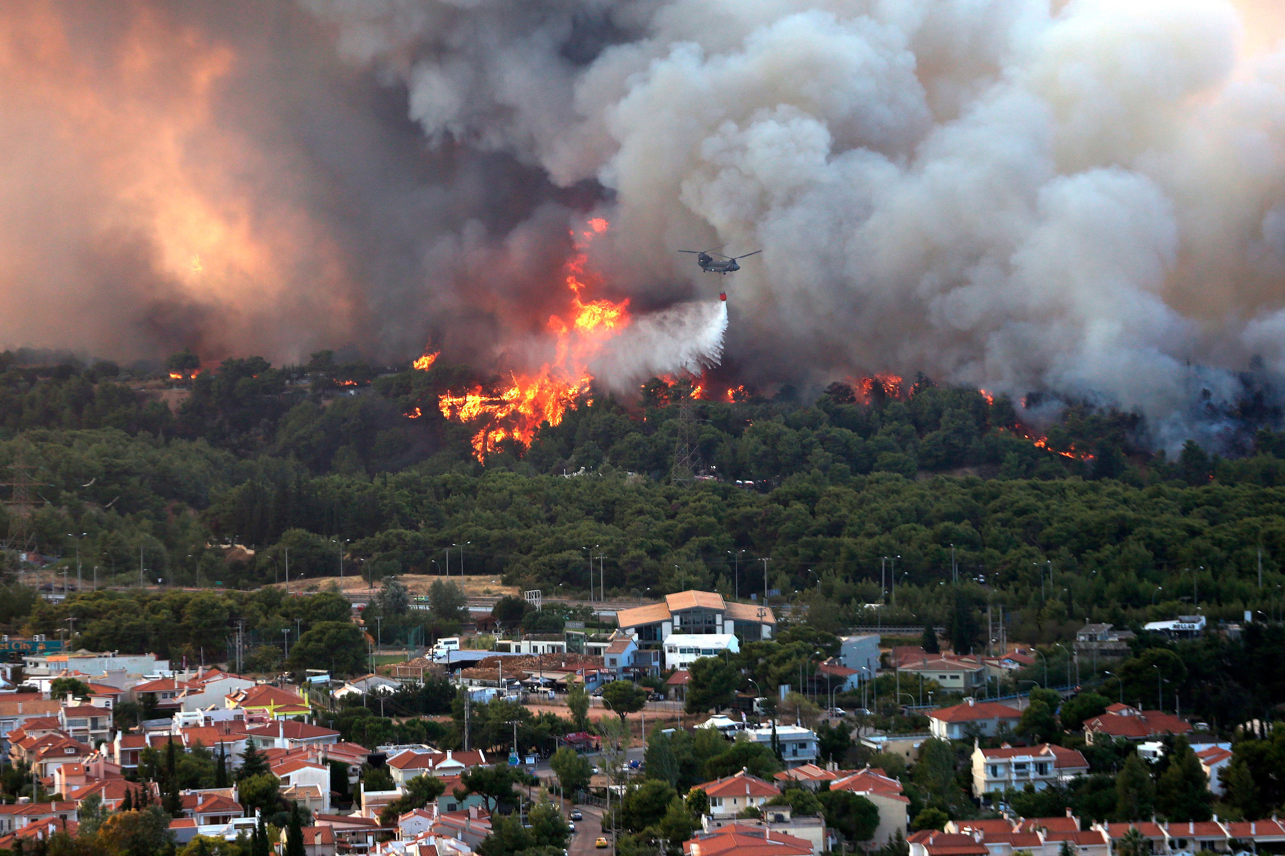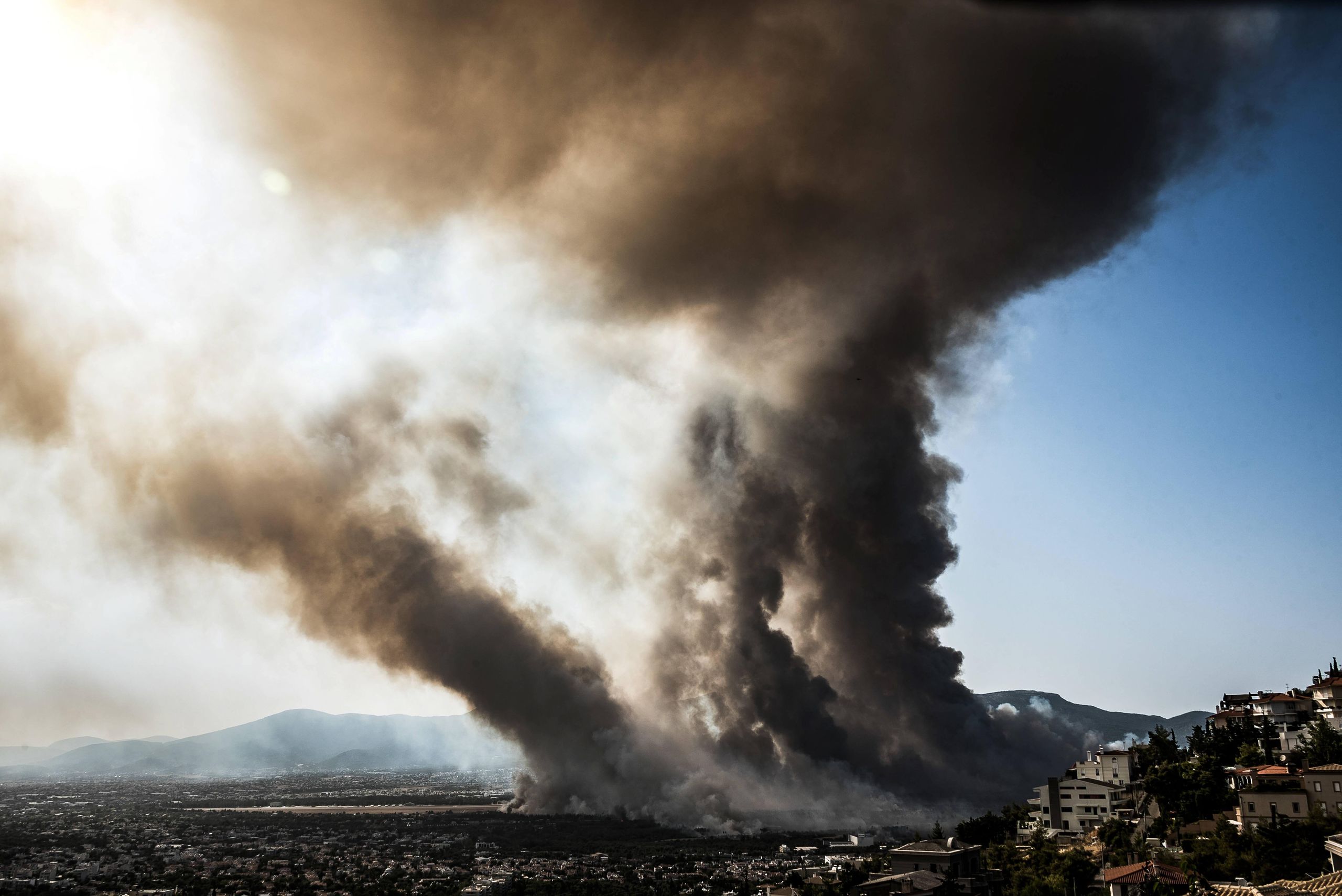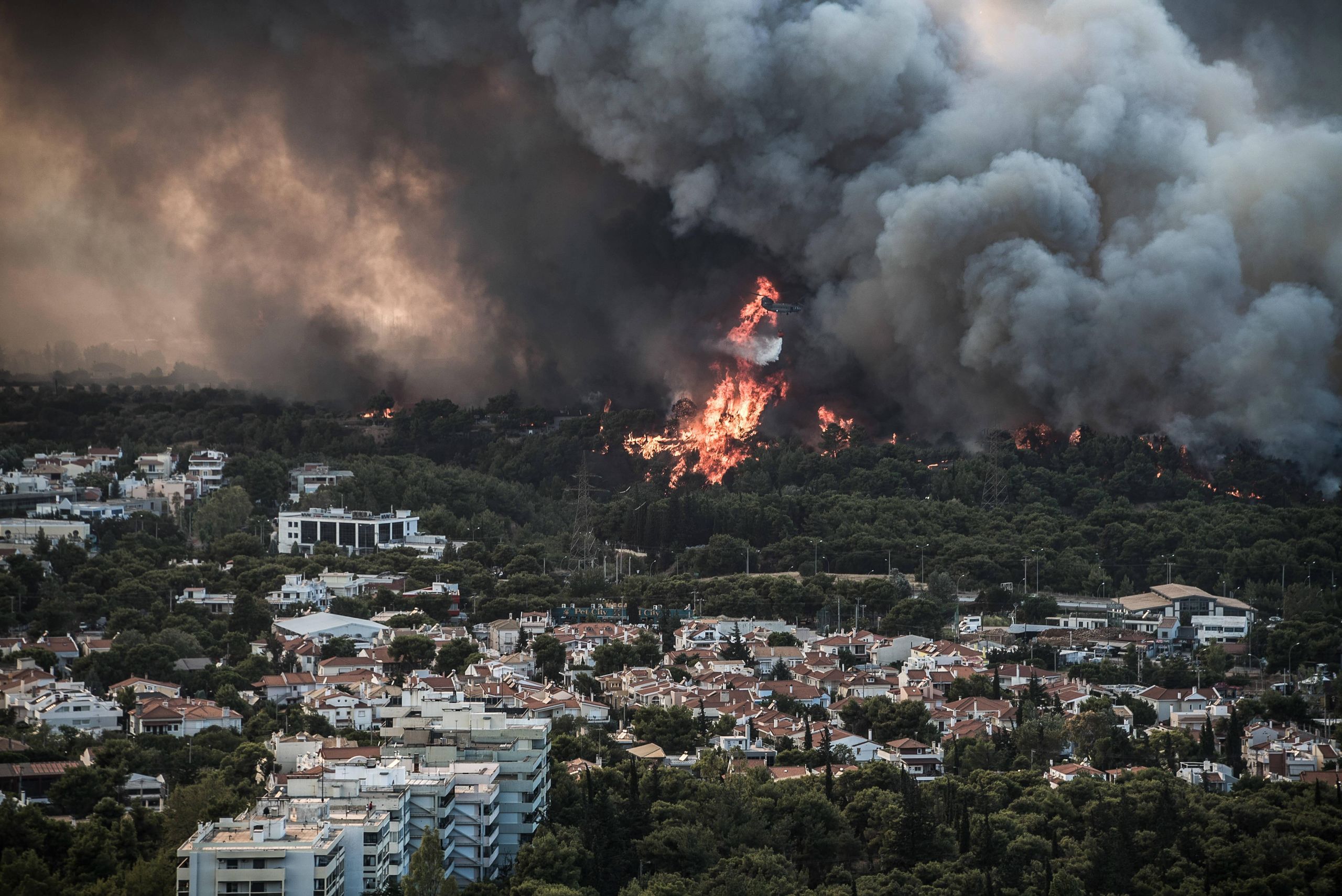Enormes incendios en suburbios del norte de Atenas, donde se ha evacuado a cientos de personas mientras se lucha para contener las llamas.