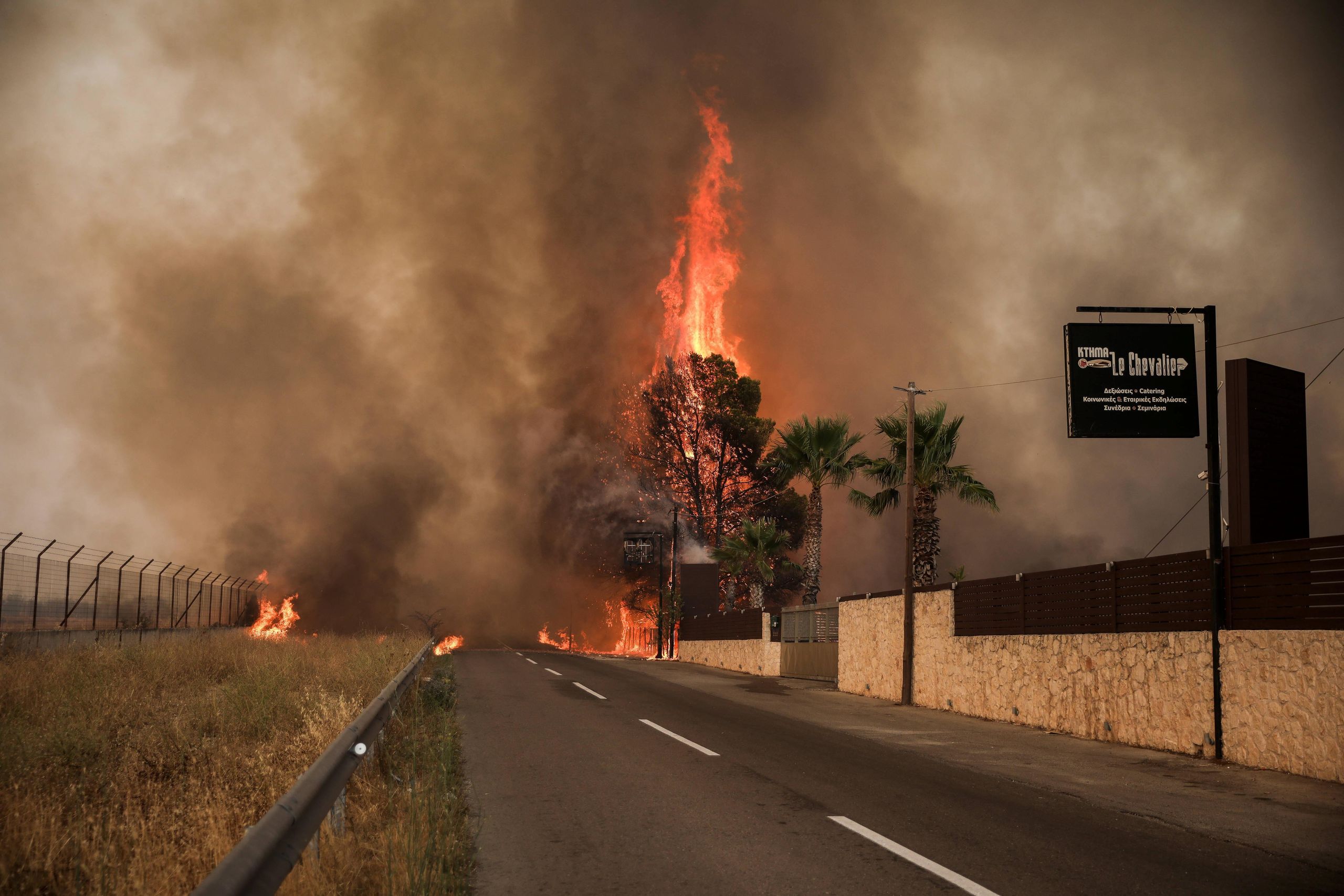 Las llamas han llegado a afectar a varias viviendas y propiedades de las afueras de la ciudad de Atenas.