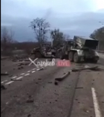 Sistema lanzacohetes BM21-GRAD ruso destruido por las tropas ucrananianas en el distrito de Jarkov.
