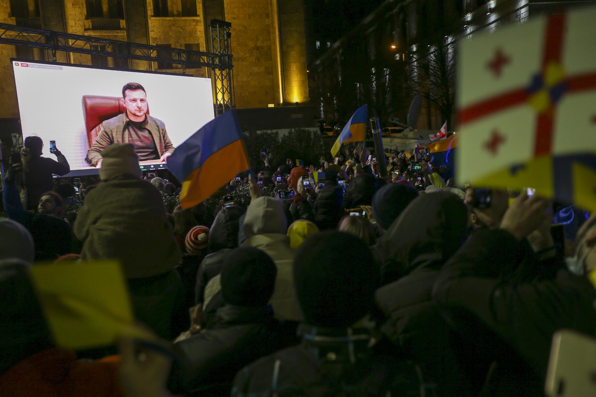En Georgia, una de las más numerosas, al menos 15.000 personas se reunieron en la céntrica avenida Rustaveli en Tiflis para escuchar ese discurso en vivo de Zelenski. Los asistentes llegaron a la avenida con banderas de Ucrania y Georgia, aunque las ucranianas eran las más numerosas. "Ucrania no puede ser puesta de rodillas", "Georgia está al lado de Ucrania y de todo el mundo civilizado", dijeron los manifestantes, que cantaron los himnos de Georgia y Ucrania.