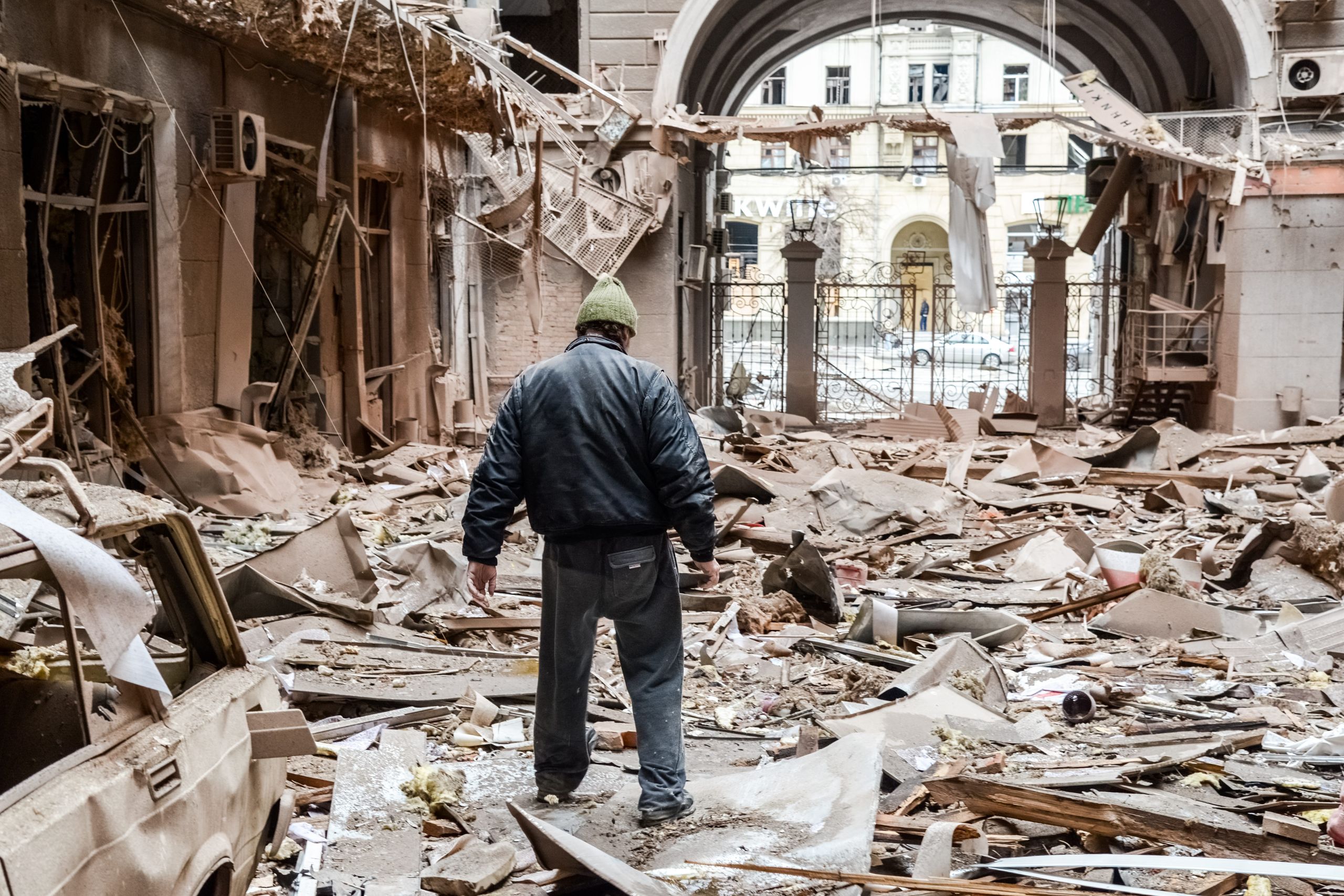 La destrucción de las bombas rusas en la ciudad de Kharkiv, Ucrania.
