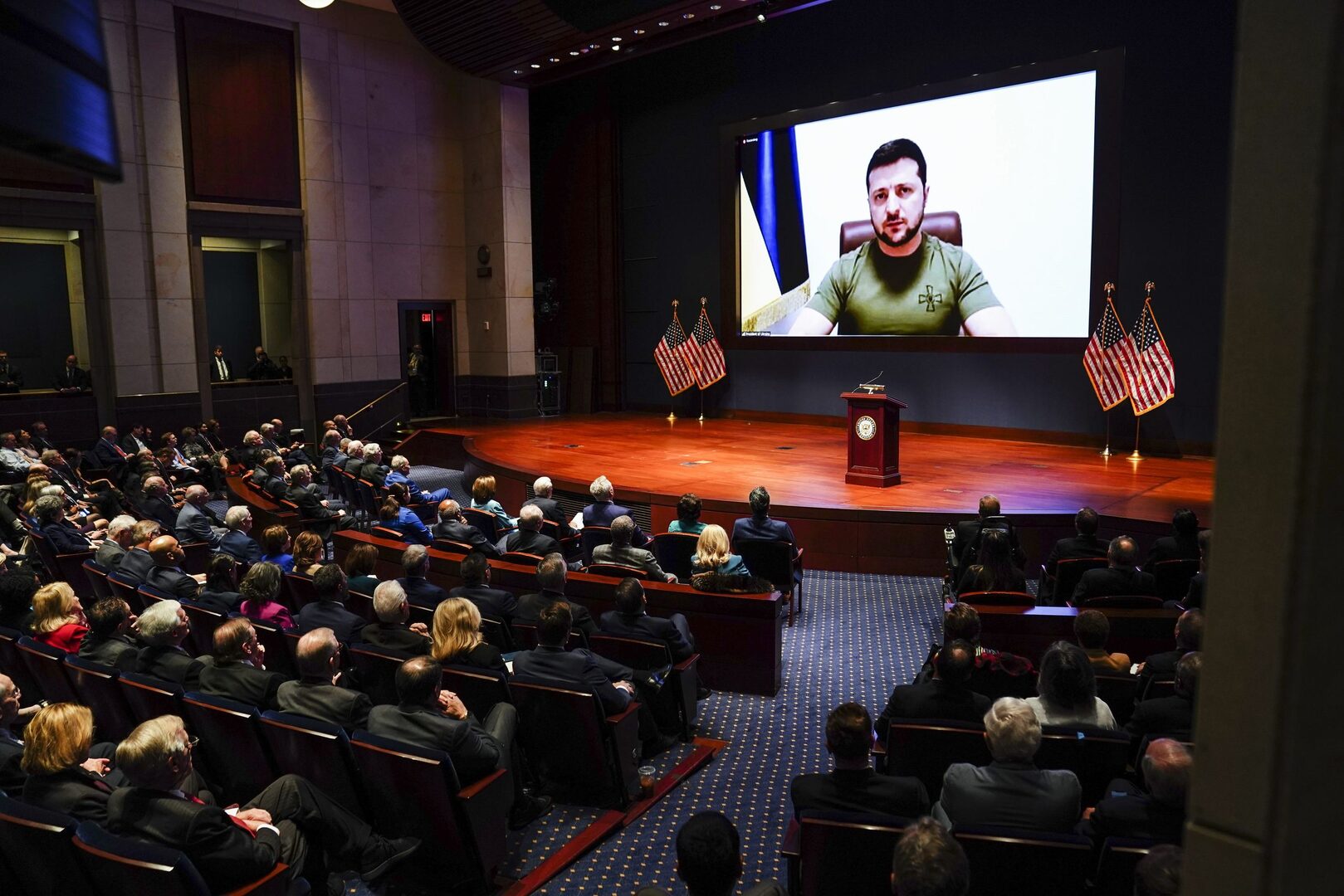 El presidente de Ucrania recordó en su alocución los ataques como los del 11 de septiembre de 2001. "Nuestro país sufre lo mismo cada día", dijo. Zelenski compareció por videoconferencia ante unos congresistas puestos en pie, con llamadas concretas para que tanto el presidente de Estados Unidos, Joe Biden, como los legisladores endurezcan más sus posiciones en relación a la invasión iniciada el 24 de febrero por orden del presidente ruso, Vladimir Putin.