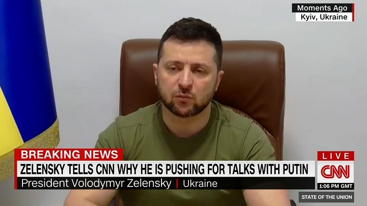 El presidente de Ucrania, Volodímir Zelenski, está "listo para negociar" con su homólogo ruso, Vladimir Putin. Lo ha asegurado este domingo en una entrevista concedida a CNN en la que también ha considerado que si las conversaciones fracasan "significaría la tercera guerra mundial".