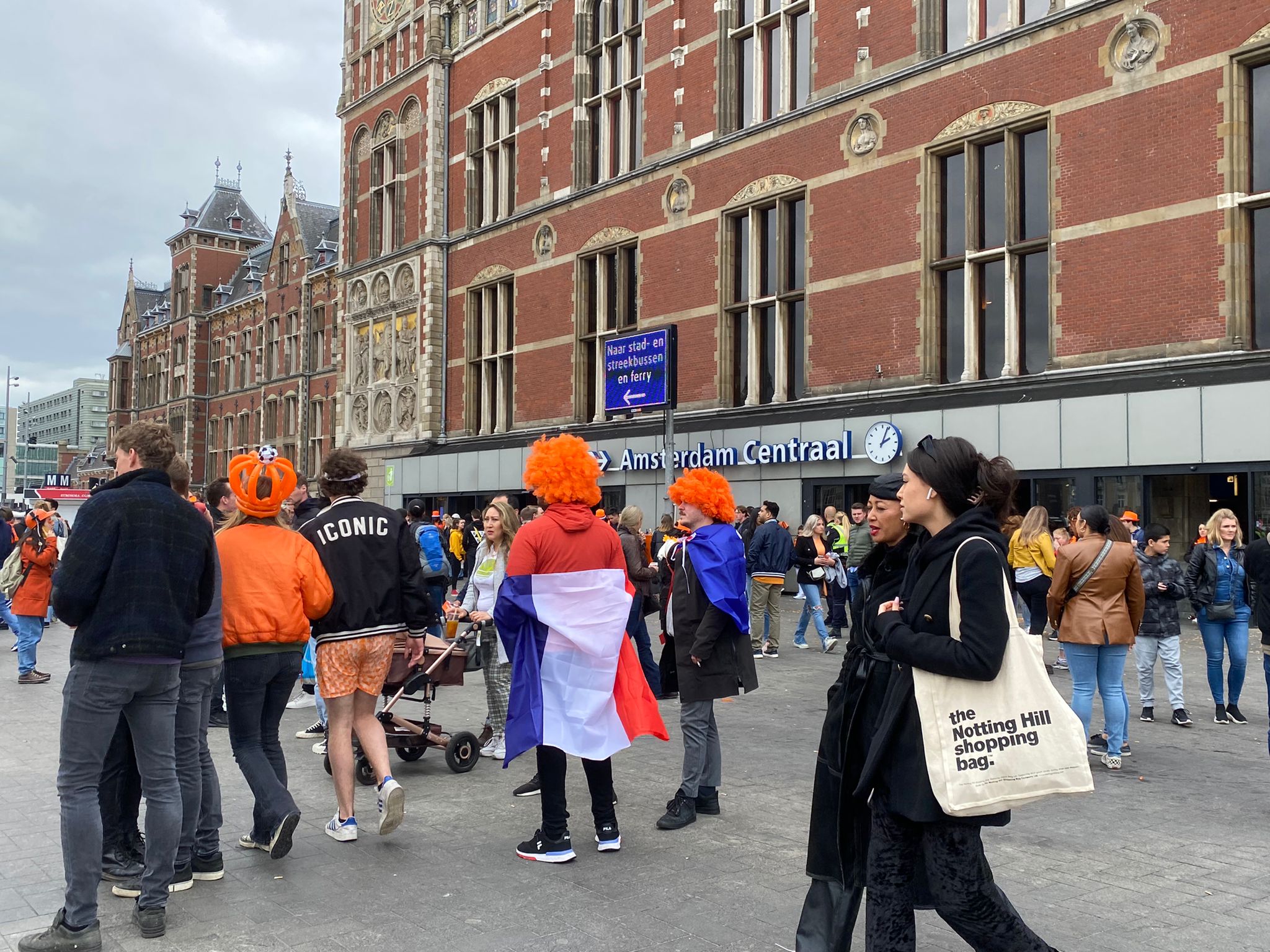 La estación central de Amsterdam se llena de turistas preparados para la fiesta desde primera hora de la mañana.