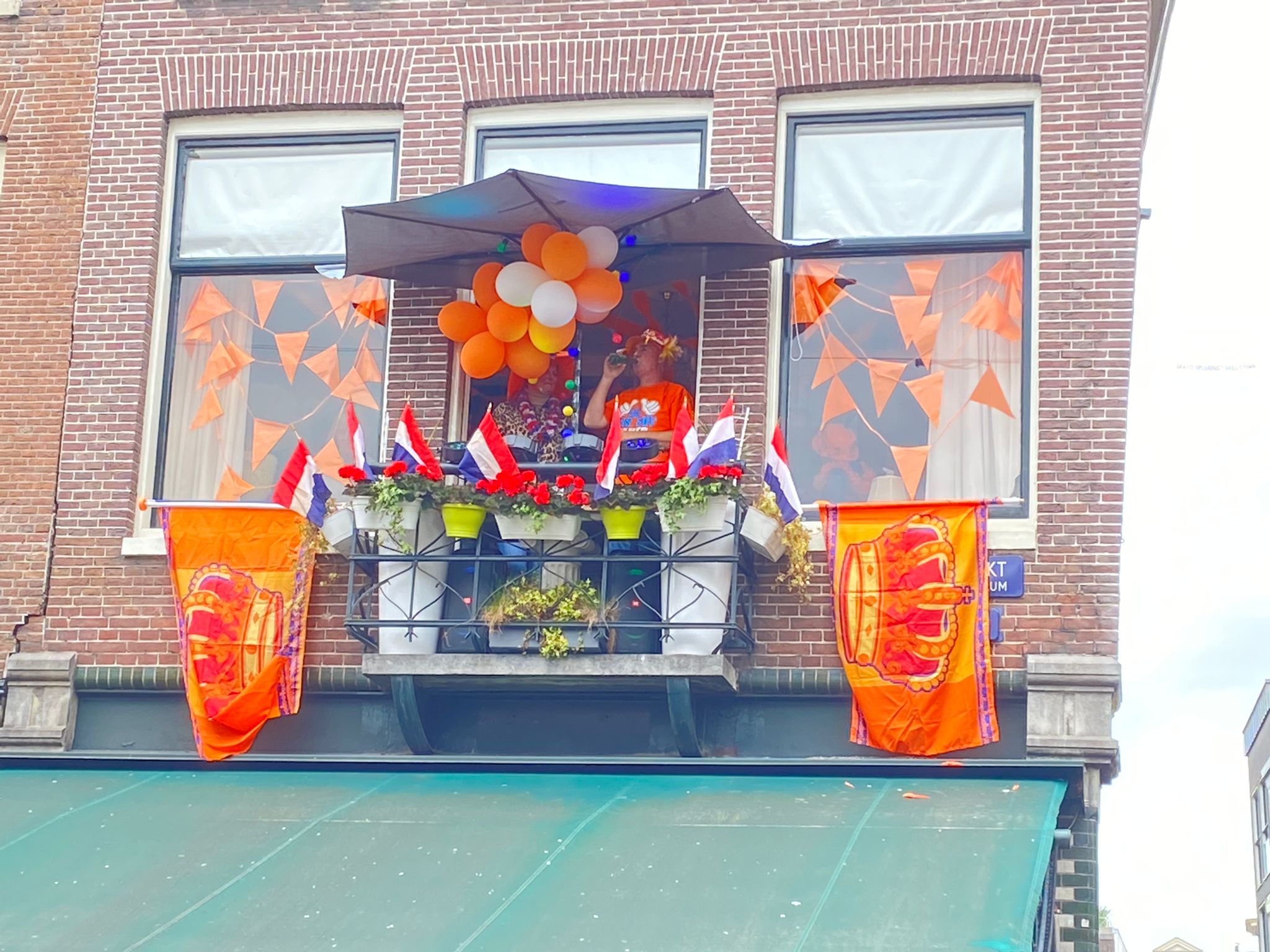 Muchas casas han abierto sus ventanas para compartir la fiesta con el resto de Ámsterdam.