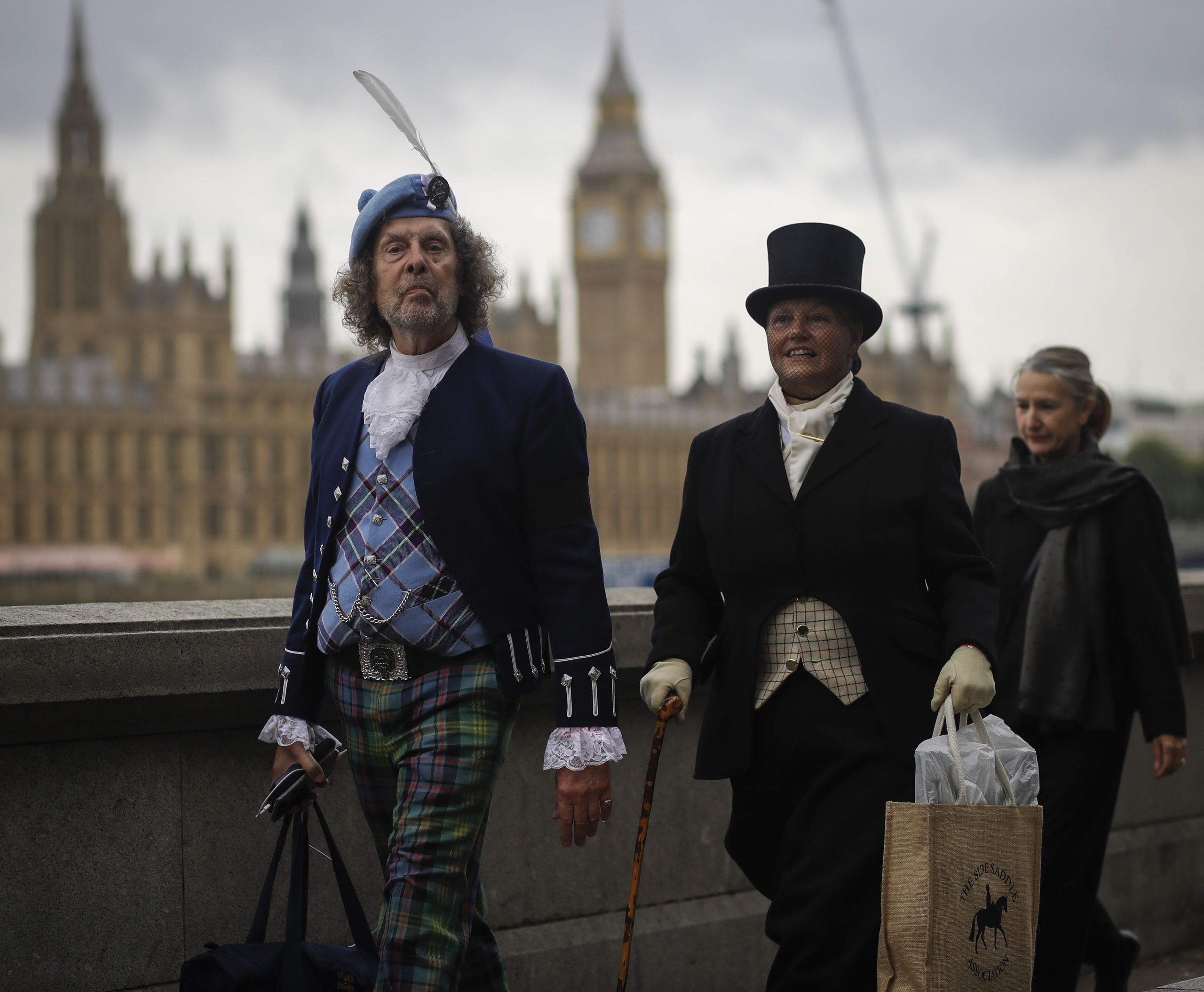Las colas para acceder a la capilla ardiente de la reina Isabel II rondan se acercan a los ocho kilómetros de longitud y cerca de nueve horas de espera cuando en Reino Unido cae la noche.