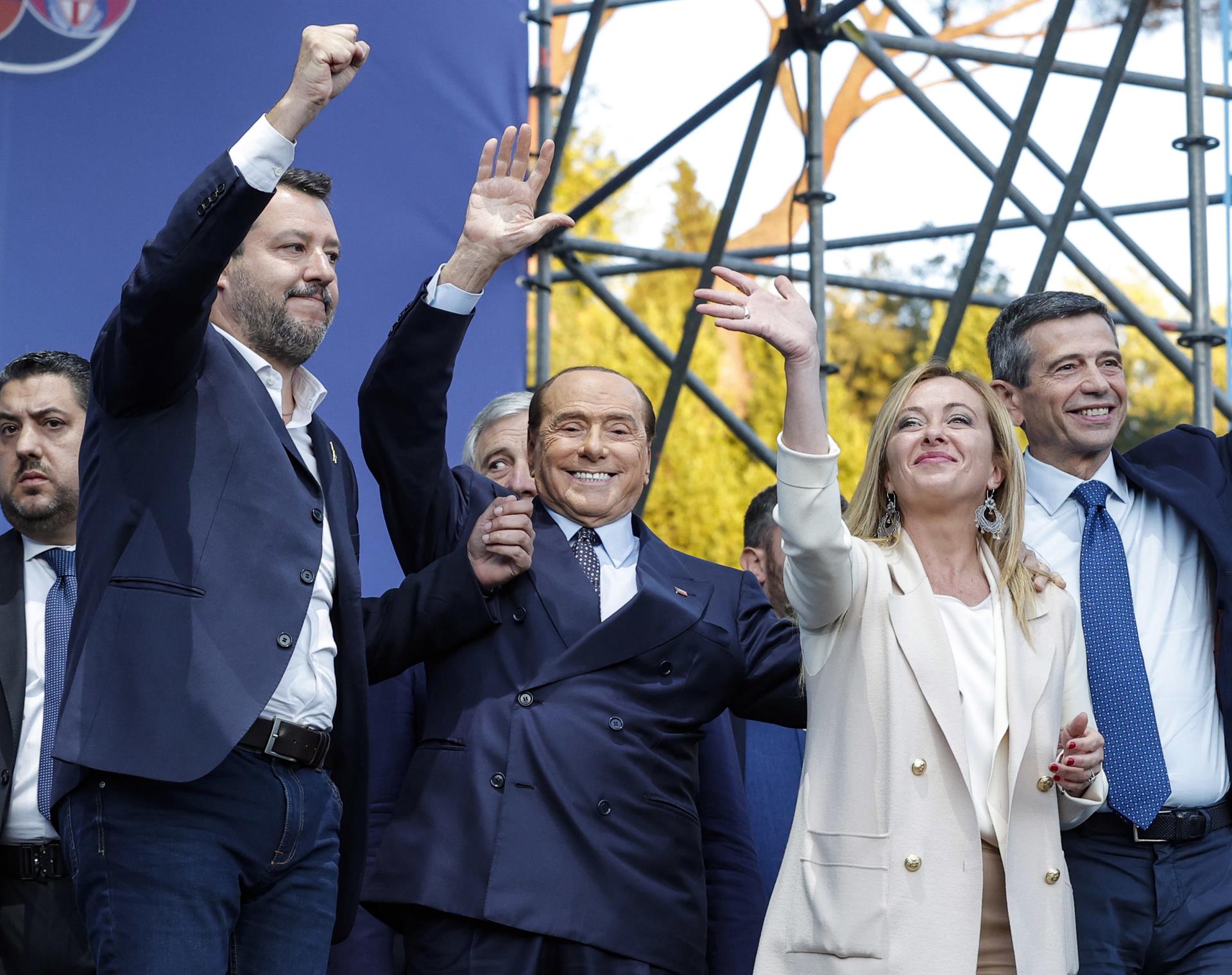 Los primeros sondeos a pie de urna apuntan a una mayoría absoluta de la coalición de derechas formada por Fratelli d’Italia, Liga y Forza Italia—liderados por Georgia Meloni, Matteo Salvini y Silvio Berlusconi— con entre el 41 y el 45% de los votos.