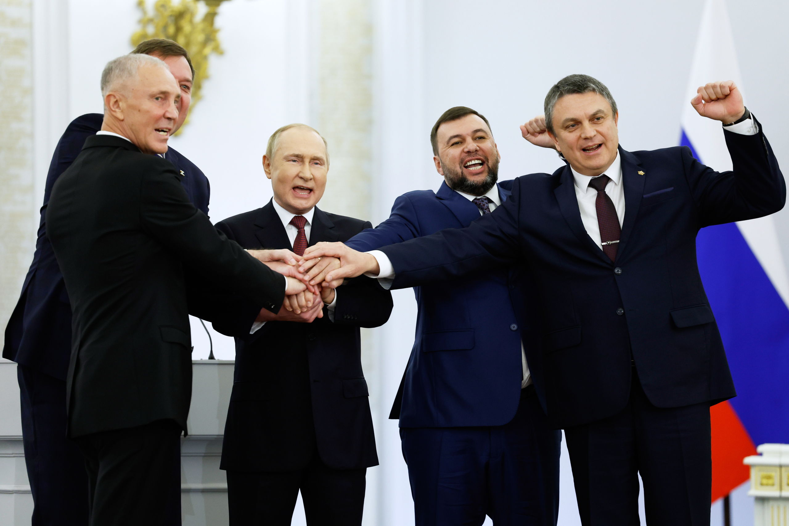 En un acto solemne y en presencia de las principales autoridades del país, el presidente de Rusia, Vladimir Putin, ha proclamado este viernes la anexión a la Federación Rusa de las regiones ucranianas de Donetsk, Lugansk, Zaporiyia y Jersón. Según ha anunciado, estos cuatro territorios ocupados militarmente quedan bajo la soberanía rusa, así como su población: "Serán ciudadanos rusos para siempre", ha señalado.