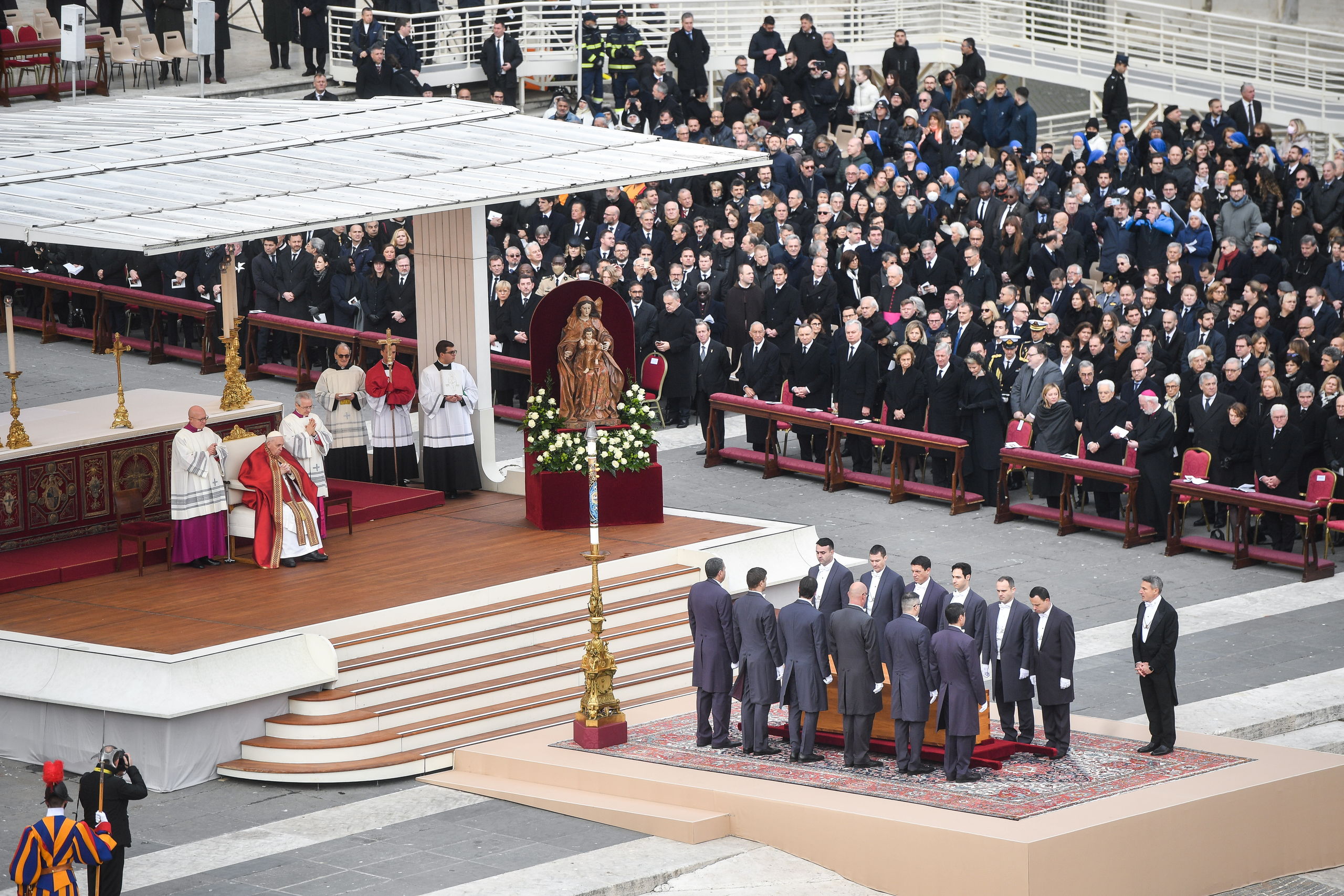 Tras tres días de capilla ardiente, que arrancaron el lunes, dos días después del fallecimiento del papa emérito a los 95 años, en los que casi 200.000 personas se han acercado hasta la basílica de San Pedro para despedirlo.