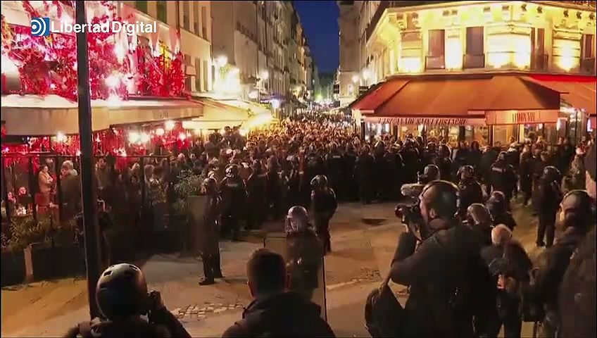 Una marea contra la reforma de las pensiones del presidente francés llena el centro de París. "Aquí estamos, aunque Macron no quiera", gritan frente al férreo dispositivo policial que les impide avanzar. Algunos lo intentan y se viven momentos de tensión con los agentes. Los manifestantes se habían concentrado previamente delante de este centro comercial, donde ayer irrumpían, sin que los vigilantes pudieran detenerlos. Protestas que se saldaban con 169 detenidos en todo el país.