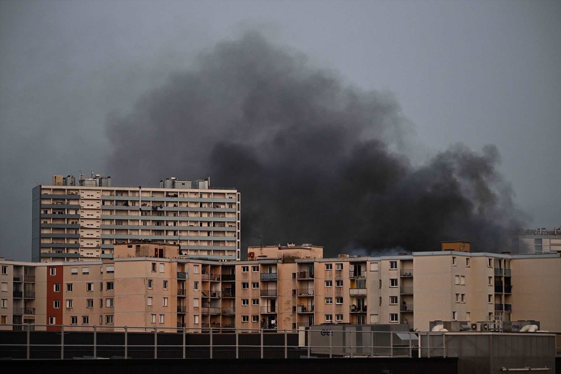 Humareda en una zona residencial de Toulouse durante las protestas en Francia