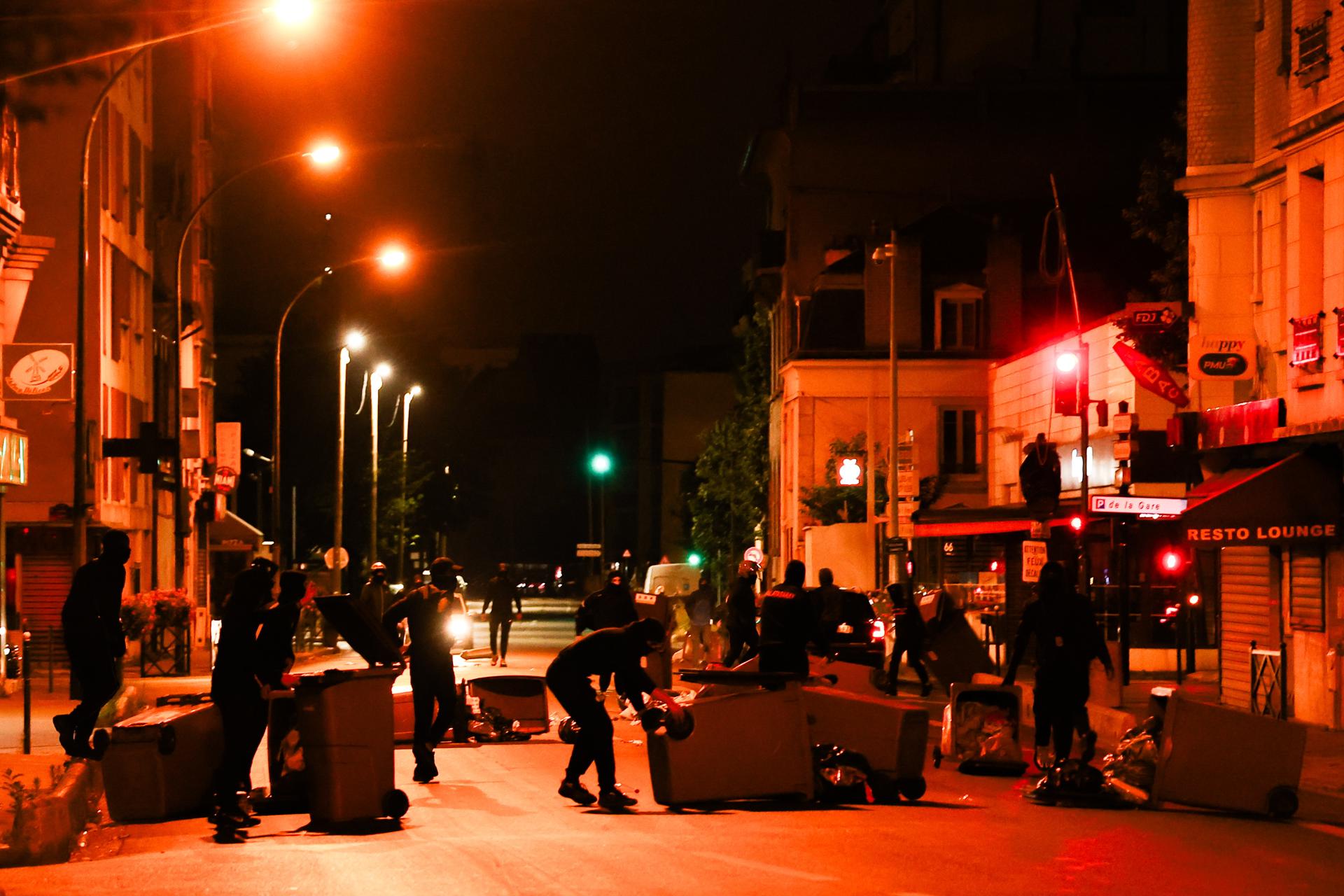 Los manifestantes hacen barricadas para bloquear una calle en Colombes, cerca de París. El presidente de Francia, Macron, se resiste a decretar el estado de emergencia tras cuatro noches consecutivas de vandalismo en las calles.