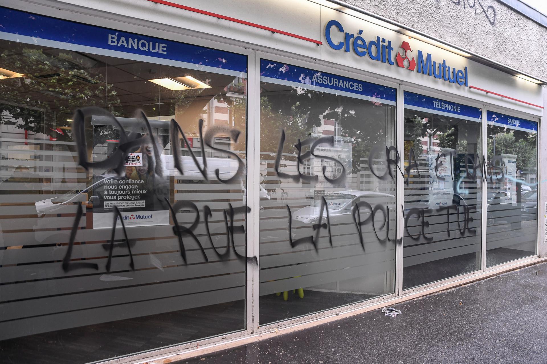 Pintada contra la policía en las ventanas de un establecimiento bancario en Montreuil: "En el CRA (centro de detención administrativa) y en la calle la Policía mata", reza la pintada.