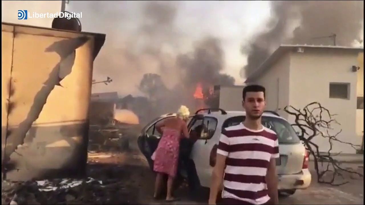 Durante la pasada noche han seguido las evacuaciones desde las playas para salvarse del incendio. Sólo esta noche 2.000 turistas han abandonado la isla en los barcos guardacostas, lanchas del ejército e incluso 30 veleros privados. El incendio avanza sin control en tres frentes de diez kilómetros cada uno. El humo, que ha llegado ya a la costa de Egipto, domina la isla.