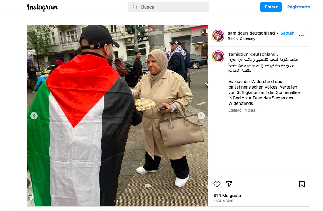 En Alemania se han prohibido ya manifestaciones de apoyo a palestinos ante la posibilidad de que se convirtieran en actos de exaltación de Hamás como el vivido el pasado sábado en el barrio de Neukölln en Berlín, con una importante presencia árabe. Según fotos aparecidas en las redes sociales, se repartieron pasteles entre los asistentes, que festejaban los atentados de Hamás el mismo día en que se estaban produciendo los ataques. "Viva el levantamiento del pueblo palestino. Repartiendo dulces en la Sonnenallee para celebrar la victoria de la resistencia", señalaron los convocantes.