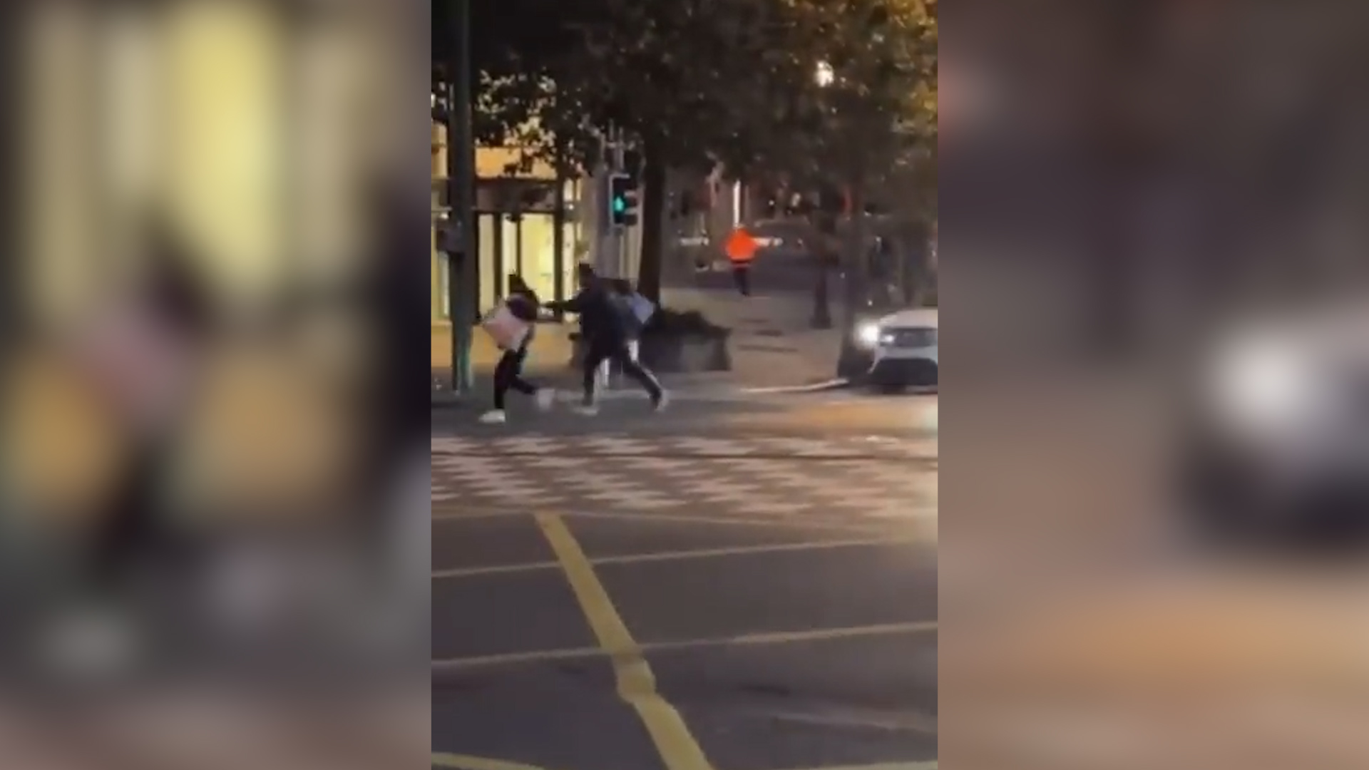 La grabación del ataque, publicada por un vecino de la zona, recoge cómo un hombre con chaqueta reflectante naranja y casco blanco llega en motocicleta a una acera, tira el vehículo y comienza a disparar a uno y otro lado.