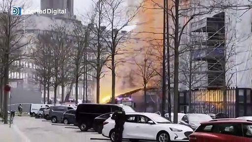 El histórico edificio de la Bolsa de Copenhague, en la capital de Dinamarca, se ha visto sumido este martes en un incendio que ha afectado al tejado y ha provocado ya el derrumbe de su icónico chapitel, sin que por el momento haya informaciones sobre víctimas.