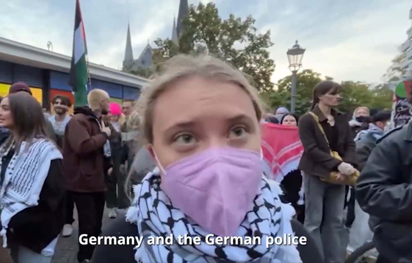 Greta Thunberg, quien fuera el rostro de la iniciativa Fridays for Future y sus "huelgas" por el clima, se ha transformado en una habitual de las protestas contra Israel en distintas partes de Europa en los últimos meses. Su última aparición pública tuvo lugar este lunes, el día en que se cumplía un año de los salvajes atentados del 7 de octubre en Israel: en la capital alemana coincidieron tanto manifestaciones en recuerdo de los secuestrados aún en manos de Hamás como protestas antiisraelíes que justificaban los ataques. Thunberg se sumó a estas últimas, como atestiguaron las fotografías que se difundieron a través de las redes sociales, que incluían declaraciones de la propia activista contra el gobierno alemán.