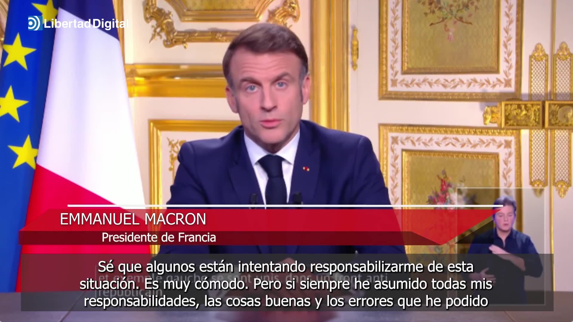 El presidente de Francia, Emmanuel Macron, ha asegurado que no se hará responsable de las "irresponsabilidades" de los demás grupos parlamentarios y ha criticado tanto a la coalición de izquierdas Nuevo Frente Popular (NFP) como al partido ultraderechista Agrupación Nacional por elegir el "desorden" tras haber tumbado al Gobierno del primer ministro Michel Barnier con una moción de censura.