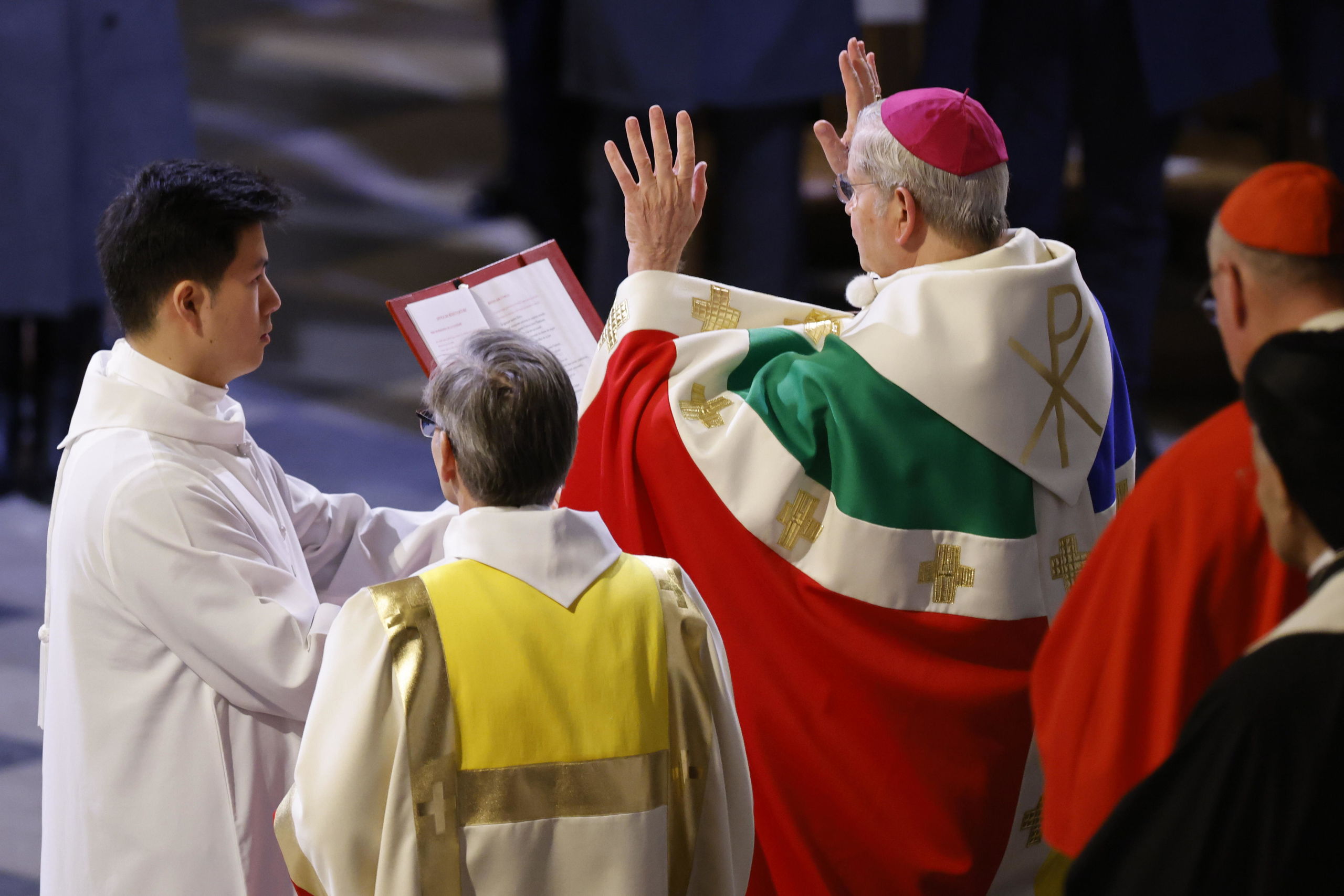 El arzobispo de Paríss, Laurent Ulrich, oficiando la ceremonia de reapertura de la catedral de Notre Dame.