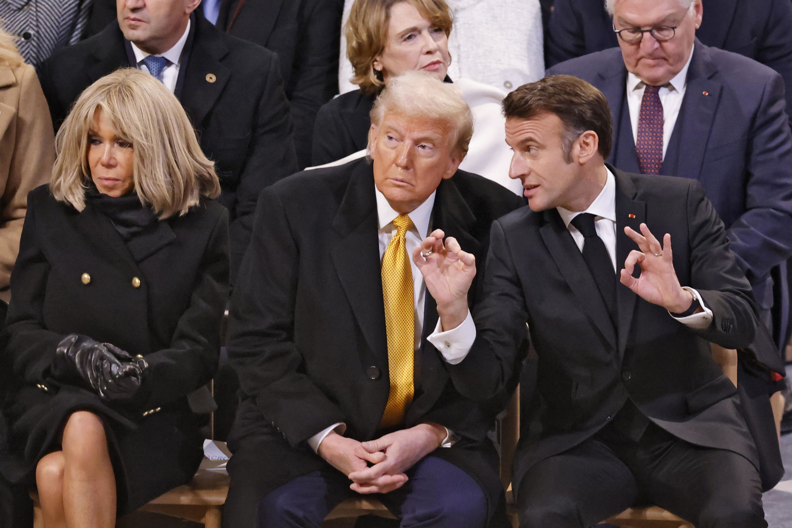 Macron y Trump dialogan en presencia de la mujer del primero durante la reapertura de la catedral de Notre Dame.