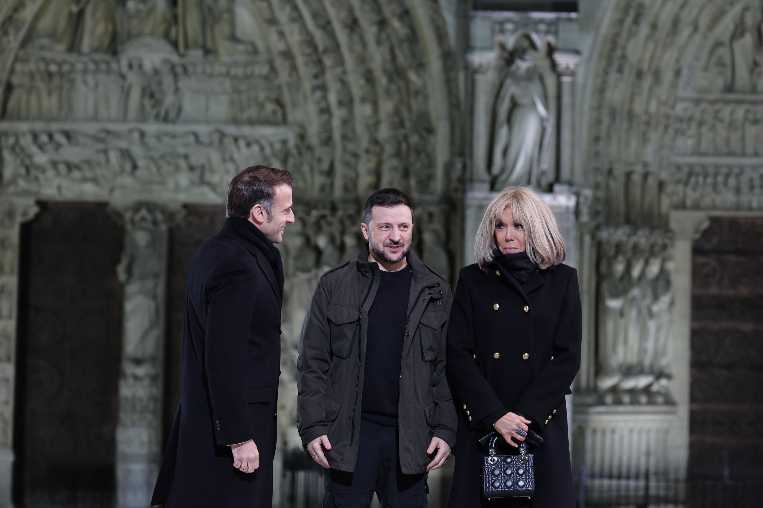 Emmanuel Macron y su mujer Brigitte reciben al presidente de Ucrania, Volodymyr Zelensky para la ceremonia de reapertura de Notre Dame.