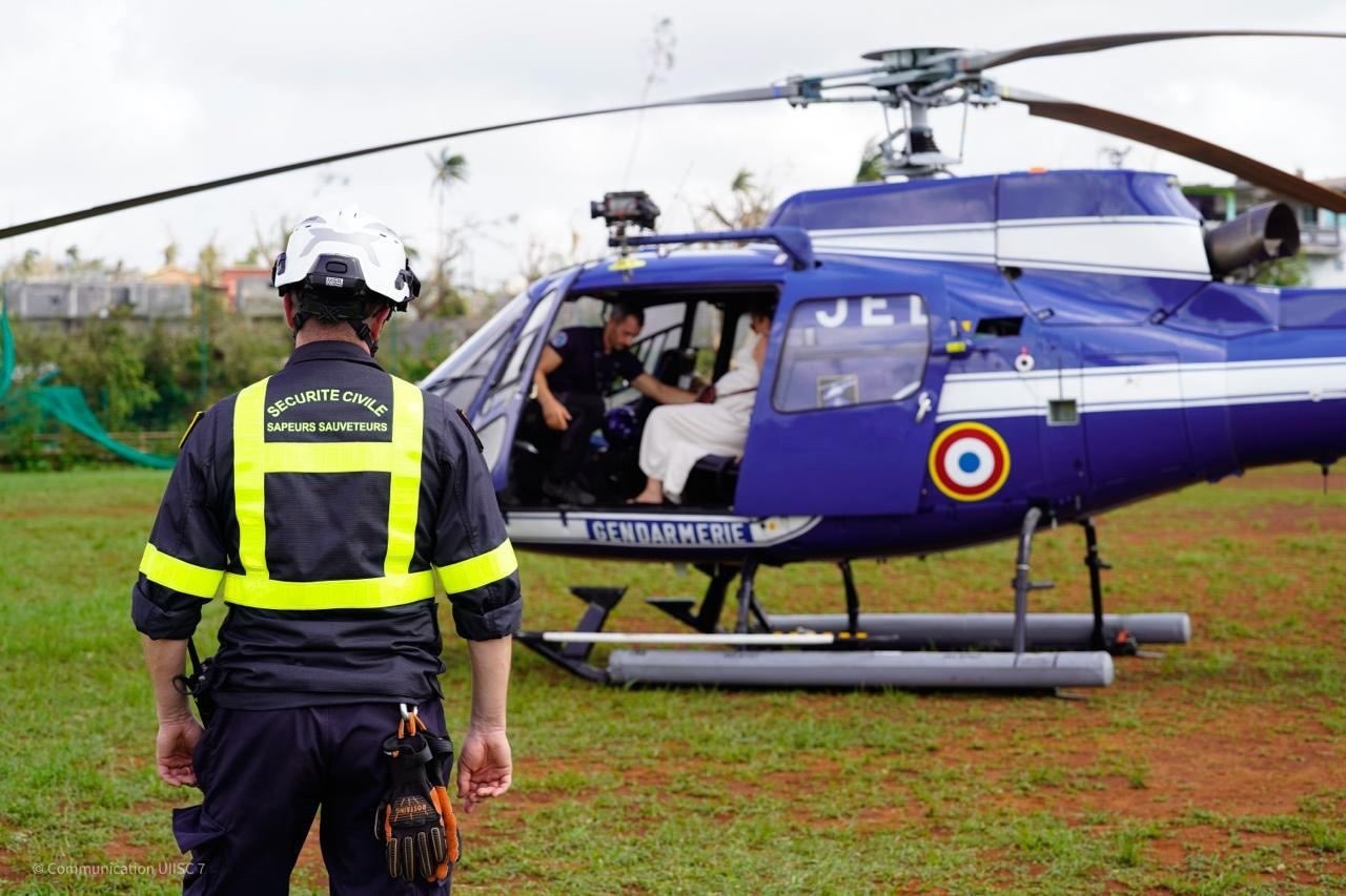 Un helicóptero realiza las tareas de salvamiento tras el paso del ciclón Chido en las islas de Mayotte.