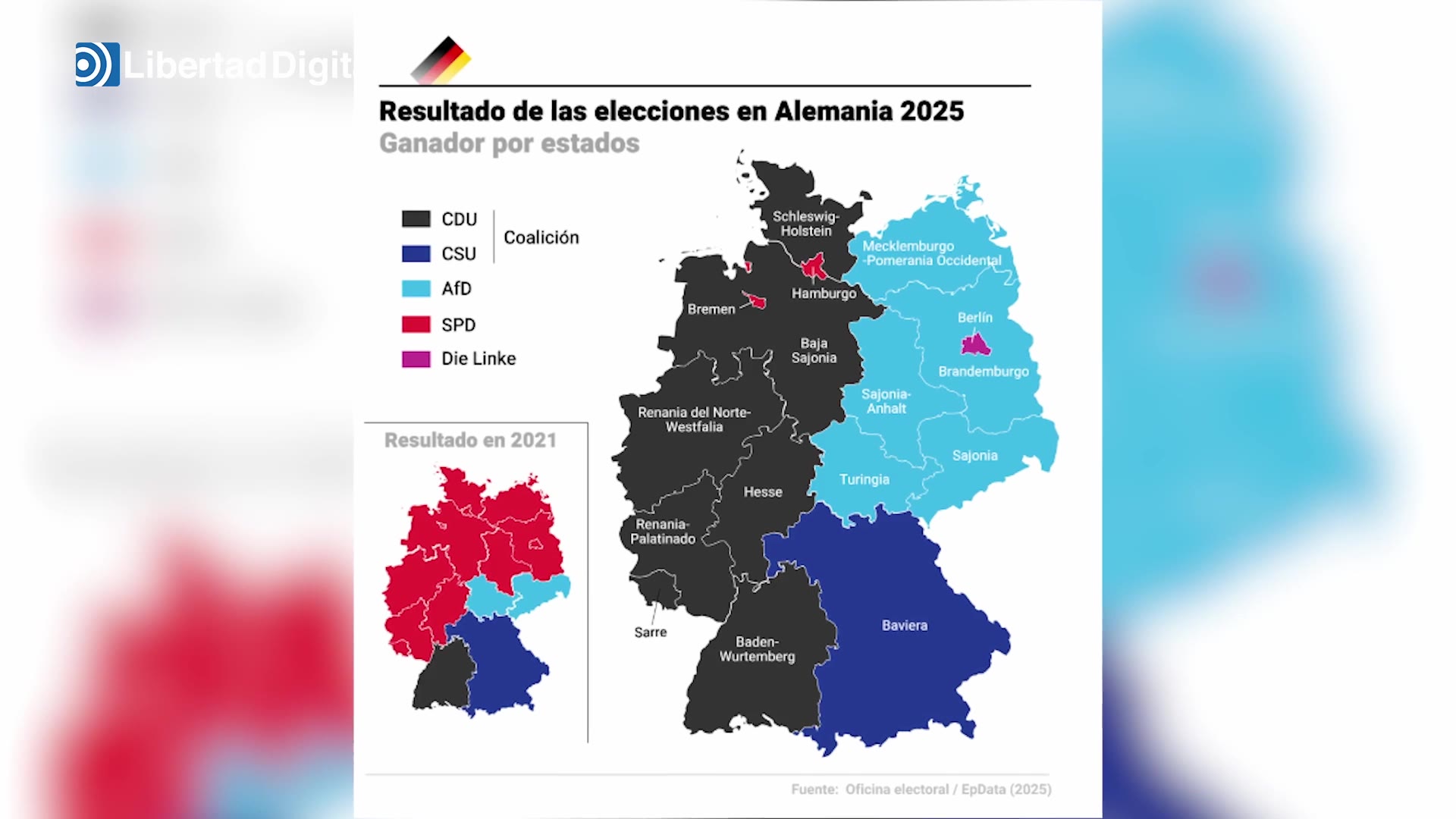 La Unión Democristiana/Unión Social Cristiana (CDU/CSU) de Alemania ha ganado las elecciones legislativas celebradas este domingo al recibir el 28,6 por ciento de los apoyos, según los resultados preliminares publicados por la Comisión Electoral alemana tras escrutar la totalidad de los votos. En concreto, la CDU que dirige Friedrich Merz ha conseguido el 22,6 por ciento, que se suma al seis por ciento recabado por la CSU bávara. En segundo lugar, se encuentra la formación Alternativa para Alemania (AfD), que ha logrado un 20,8 por ciento de los votos, en el que es su mejor resultado histórico.