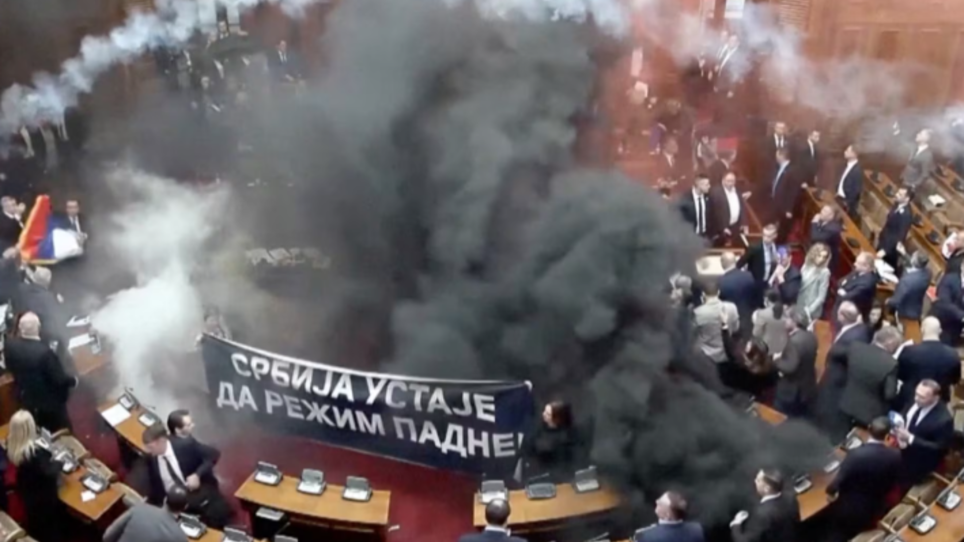 El Parlamento de Serbia se ha convertido en un campo de batalla. Este martes, diputados de la oposición han lanzado granadas de humo y gases lacrimógenos en plena sesión. La acción fue una muestra de rechazo a las políticas del gobierno y un gesto de apoyo a las manifestaciones estudiantiles que se han desarrollado durante los últimos cuatro meses. Las protestas, que comenzaron tras el derrumbe del tejado de una estación de tren en Novi Sad, donde murieron 15 personas el pasado 1 de noviembre, han derivado en un movimiento masivo contra la corrupción en el país.