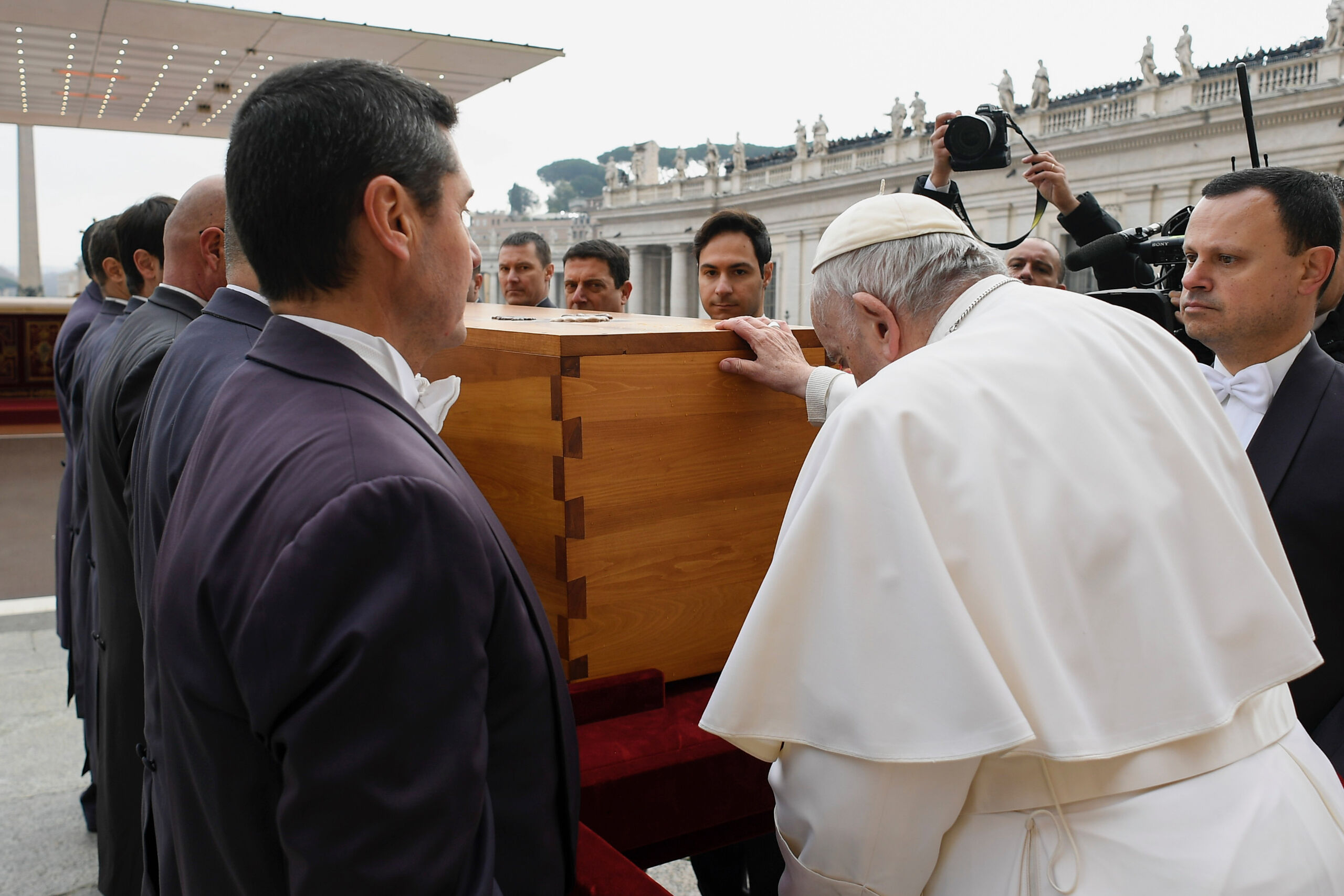 En 2023 Benedicto XVI falleció a los 95 años. El papa Francisco puso su mano en el féretro como despedida.