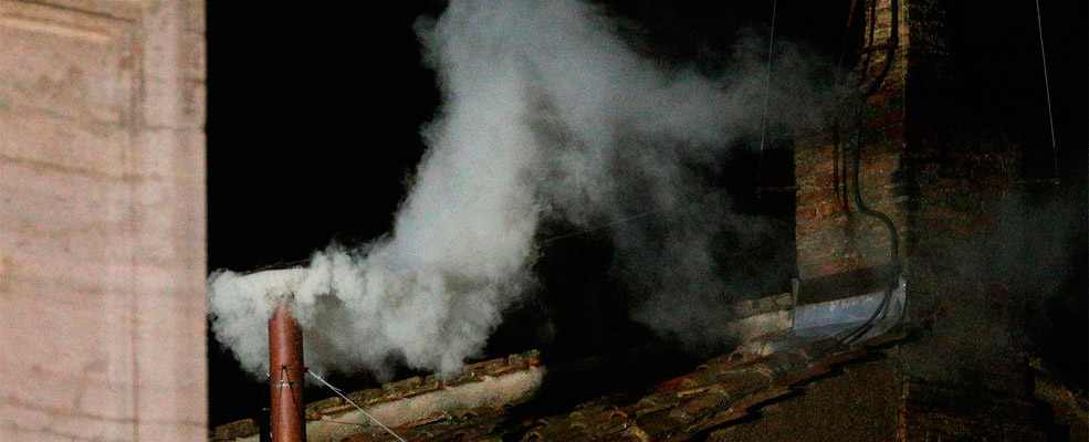 MIentras, el humo blanco que salga de la chimenea de la Capilla Sixtina anunciará al mundo que un nuevo Papa ha sido elegido. Se habrá quemado paja húmeda en otra estufa situada junto a la de las votaciones que es lo que se conoce como "fumata blanca". A la vez, las campanas de la Basílica de San Pedro empiezan a repicar.