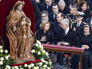 Las primeras filas serán ocupadas por las Casas Reales católicas, por lo que Don Felipe y Doña Letizia, junto a la reina Sofía. Compartirán espacio, de izquierda a derecha y por orden alfabético, con Felipe y Matilde de Bélgica, el Gran Duque Enrique y la Gran Duquesa María Teresa de Luxemburgo, los príncipes Alberto II y Charlène de Mónaco, así como del copríncipe de Andorra y obispo de la Seo de Urgell, Joan Enric Vives, y el Gran Maestre de la Orden de Malta, frey John T. Dunlap.