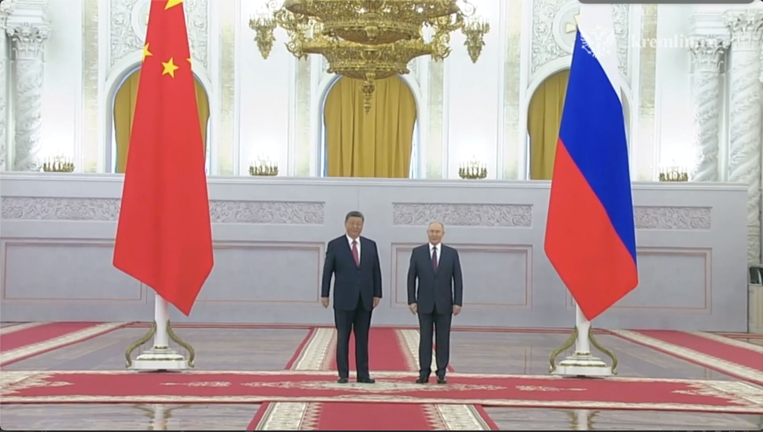 El presidente ruso, Vladímir Putin, ha recibido este martes a su homólogo chino, Xi Jinping, en el Gran Palacio del Kremlin, en el marco de la visita oficial del líder chino a Rusia. La ceremonia de bienvenida tuvo lugar en la imponente Sala de San Jorge, la más grande del Kremlin, donde ambos mandatarios escucharon los himnos nacionales de sus países.