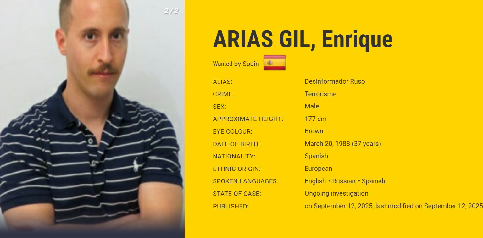 Un español se ha convertido en uno de los fugitivos más buscados por la Europol tras dictarse una orden internacional de detención por su presunta implicación en delitos de ciberterrorismo. Su nombre es Enrique Arias Gil, tiene 37 años y es profesor universitario.