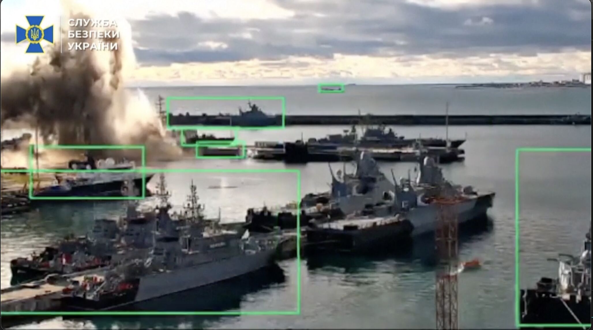 Ucrania ha lanzado un ataque sin precedentes contra la armada rusa con la destrucción de un submarino en el puerto de Novorosíisk. Las imágenes, difundidas sin audio por el Servicio Secreto ucraniano, muestran el momento del ataque en aguas rusas.