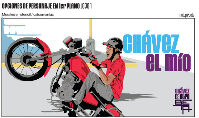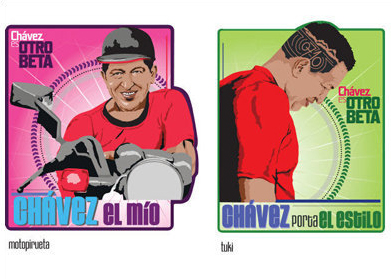 El presidente venezolano emula en los carteles las actitudes de los chicos de barrio, para granjearse su voto.